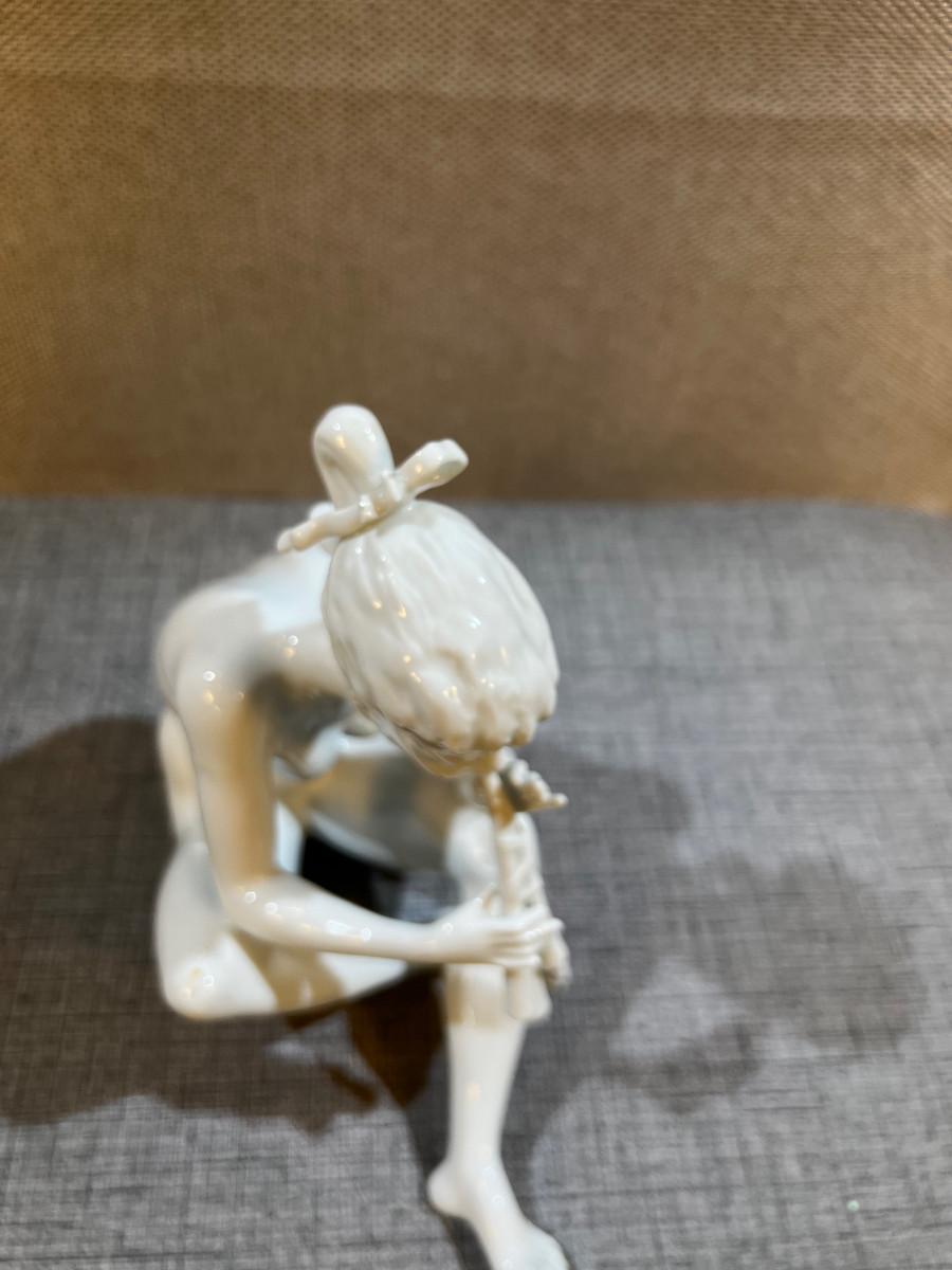 7" Tall Damaged Ribbon in the hair, 1/2 Bow missing. 20th Century Dresden