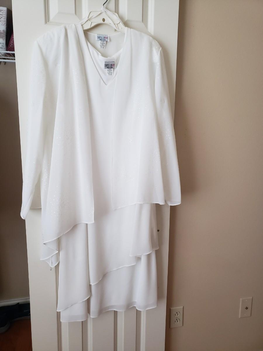 Dress Savvy NY even dress with jacket. Bias cut flowy white sleeveless dress with jacket. Plus size.