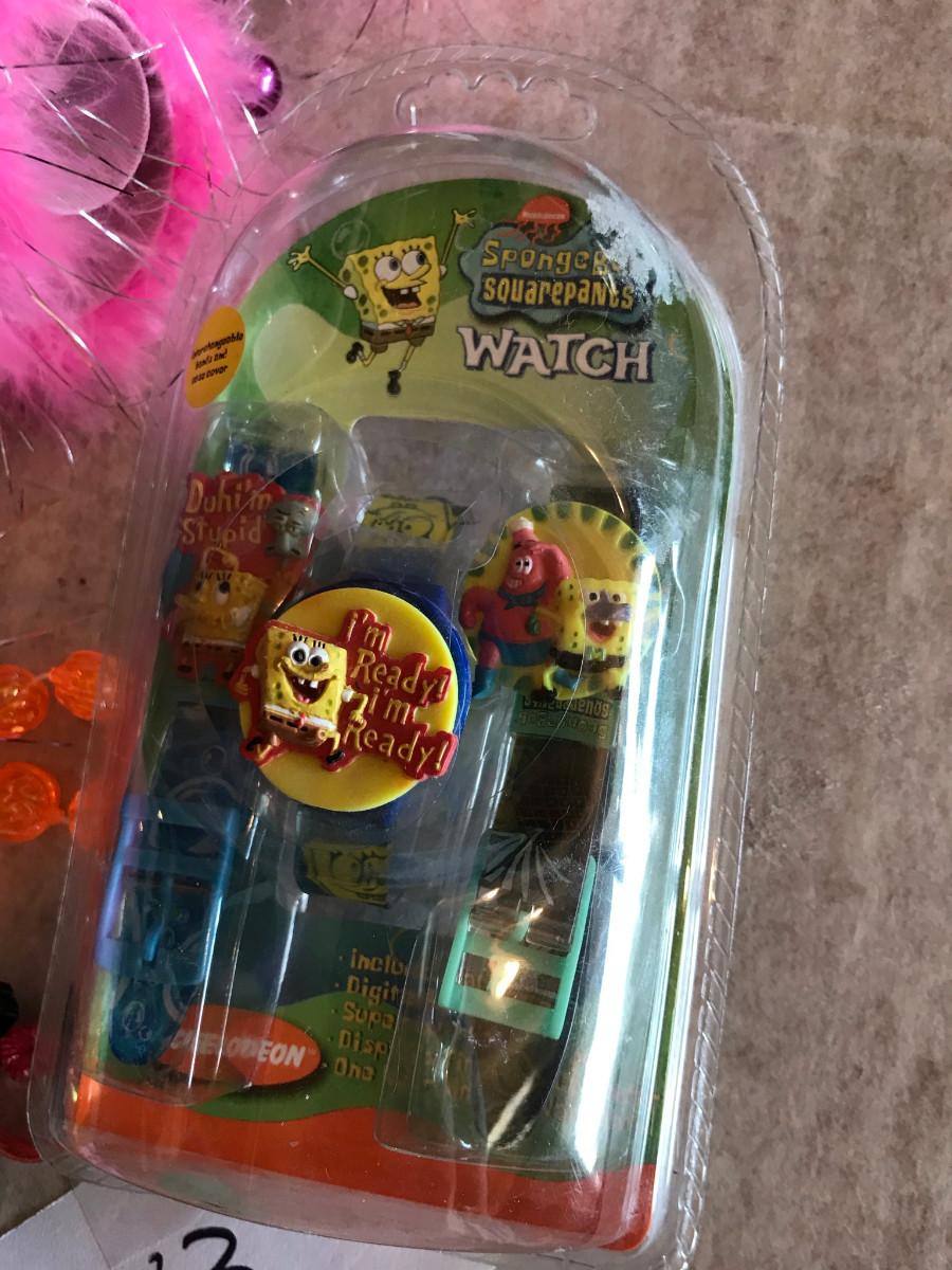 Bin of kids jewelry, Spongebob watch too!