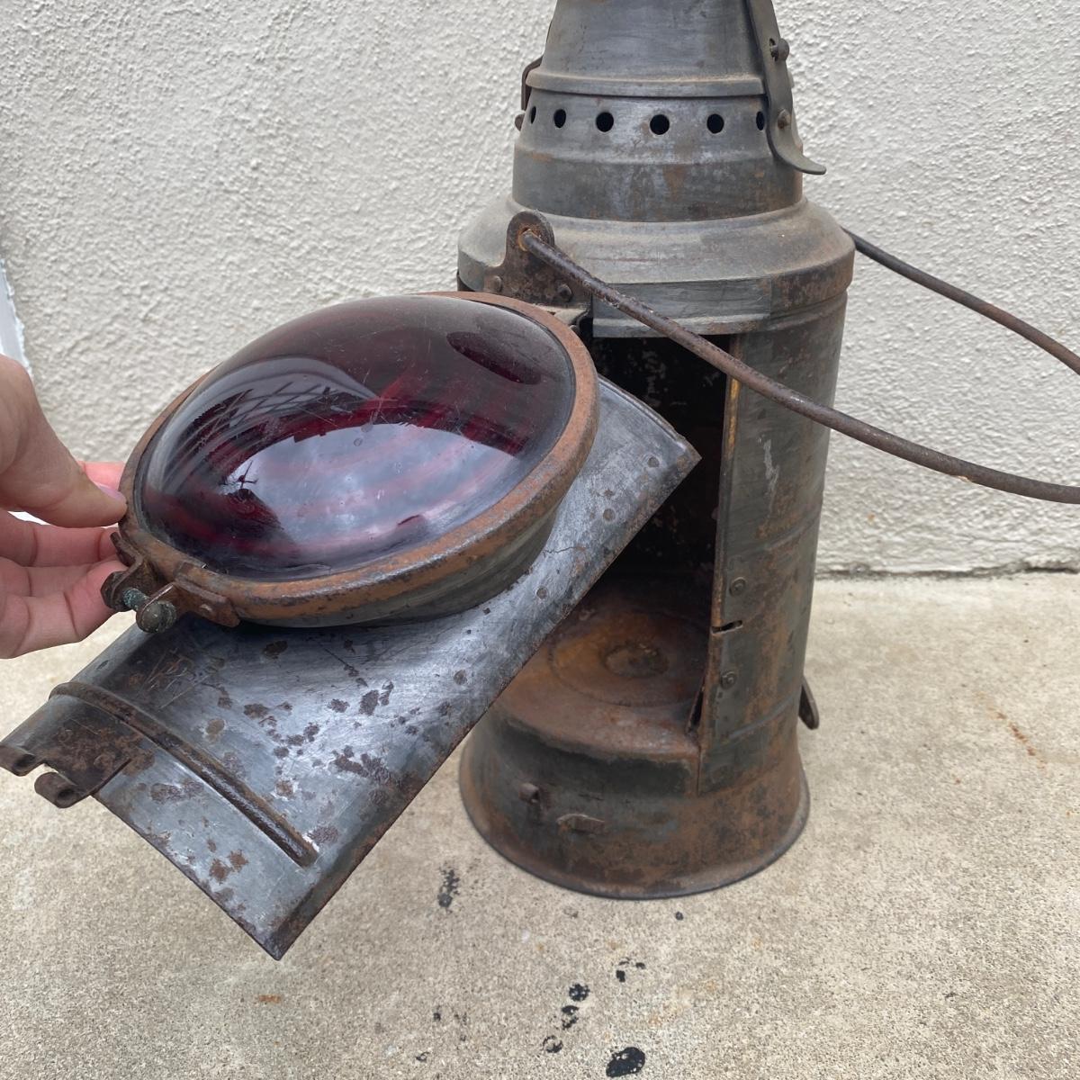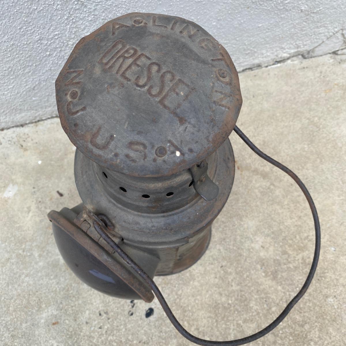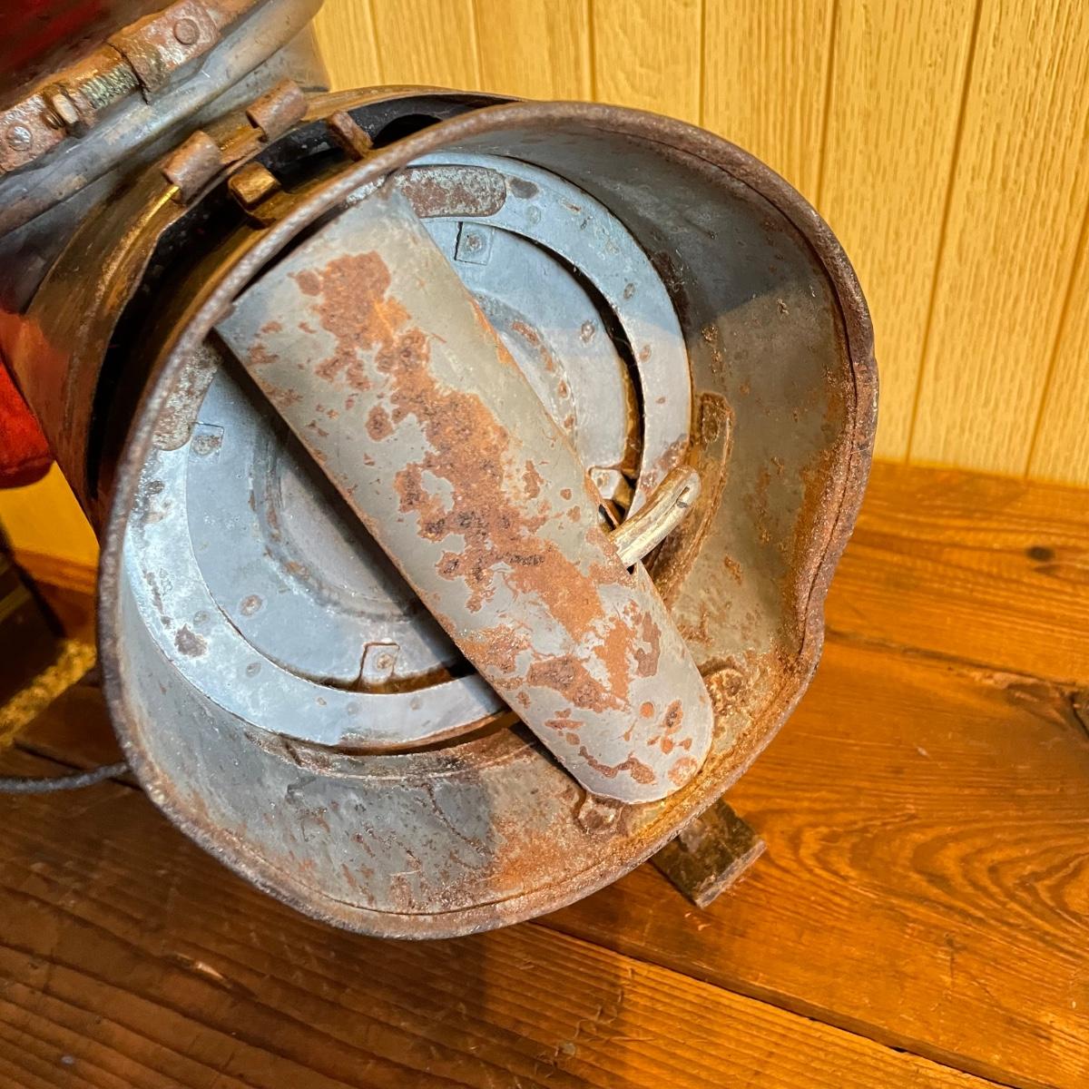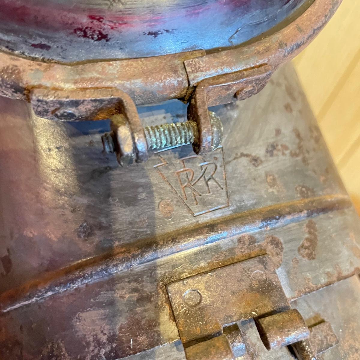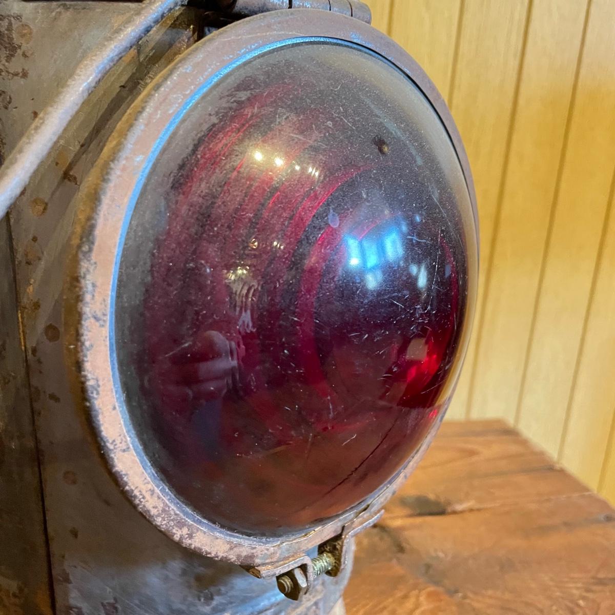 Dressel caboose marker signal lamp with bracket and mount. Signal lamp is marked DRR on both front and rear sides. The base has a diameter of 6.5” and piece is 15” tall before it’s handle. The width between the red glass lamp cover and mount is about 10.5”. See images. Shipping available.