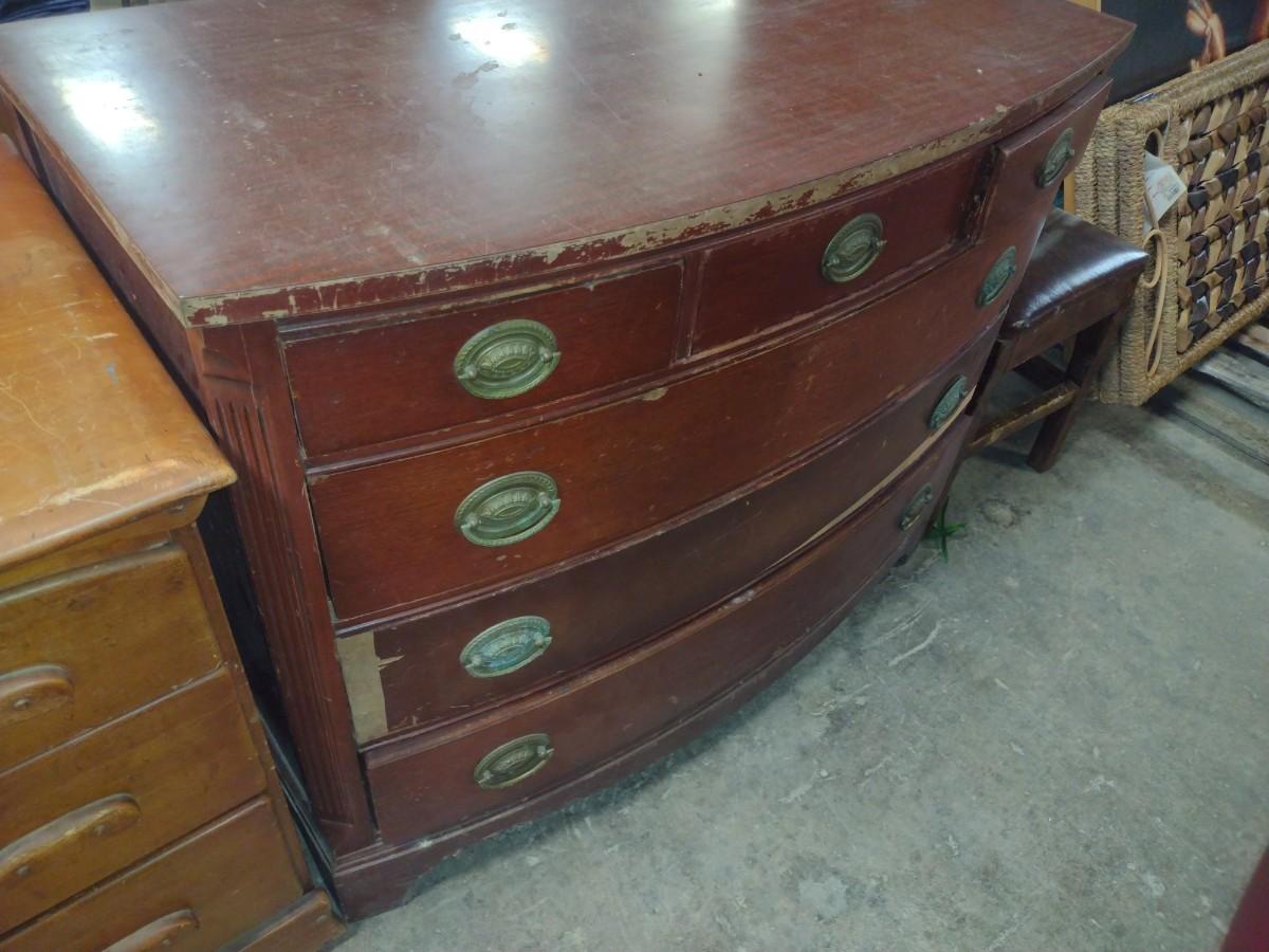 Vintage Mahogany Three over Three Dresser. Has some wear, delamination, and scratches as shown.