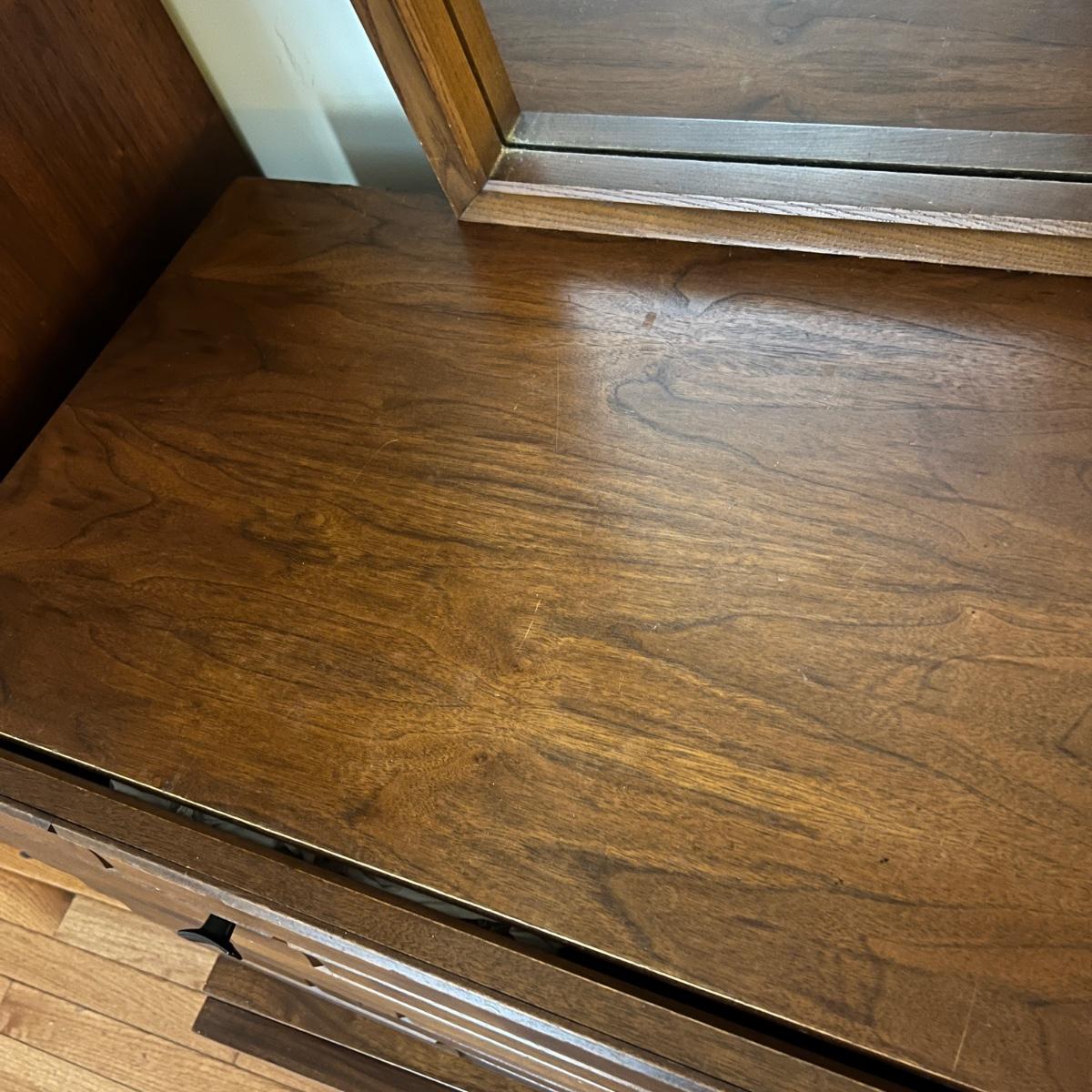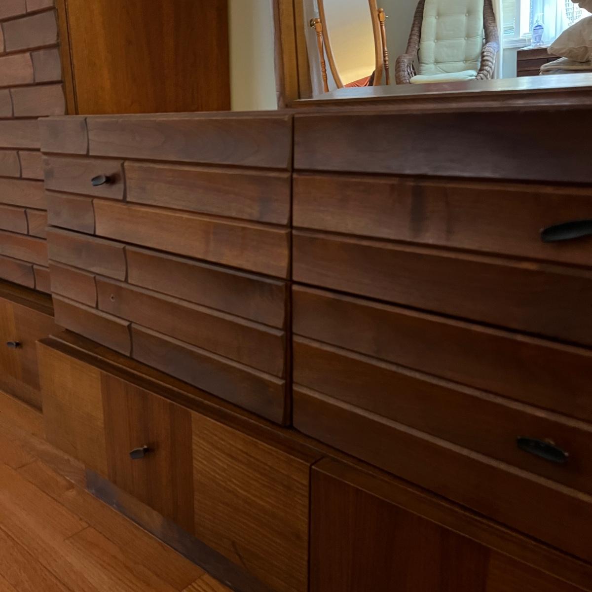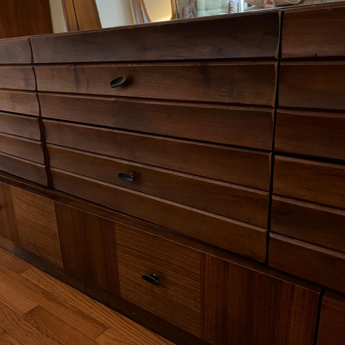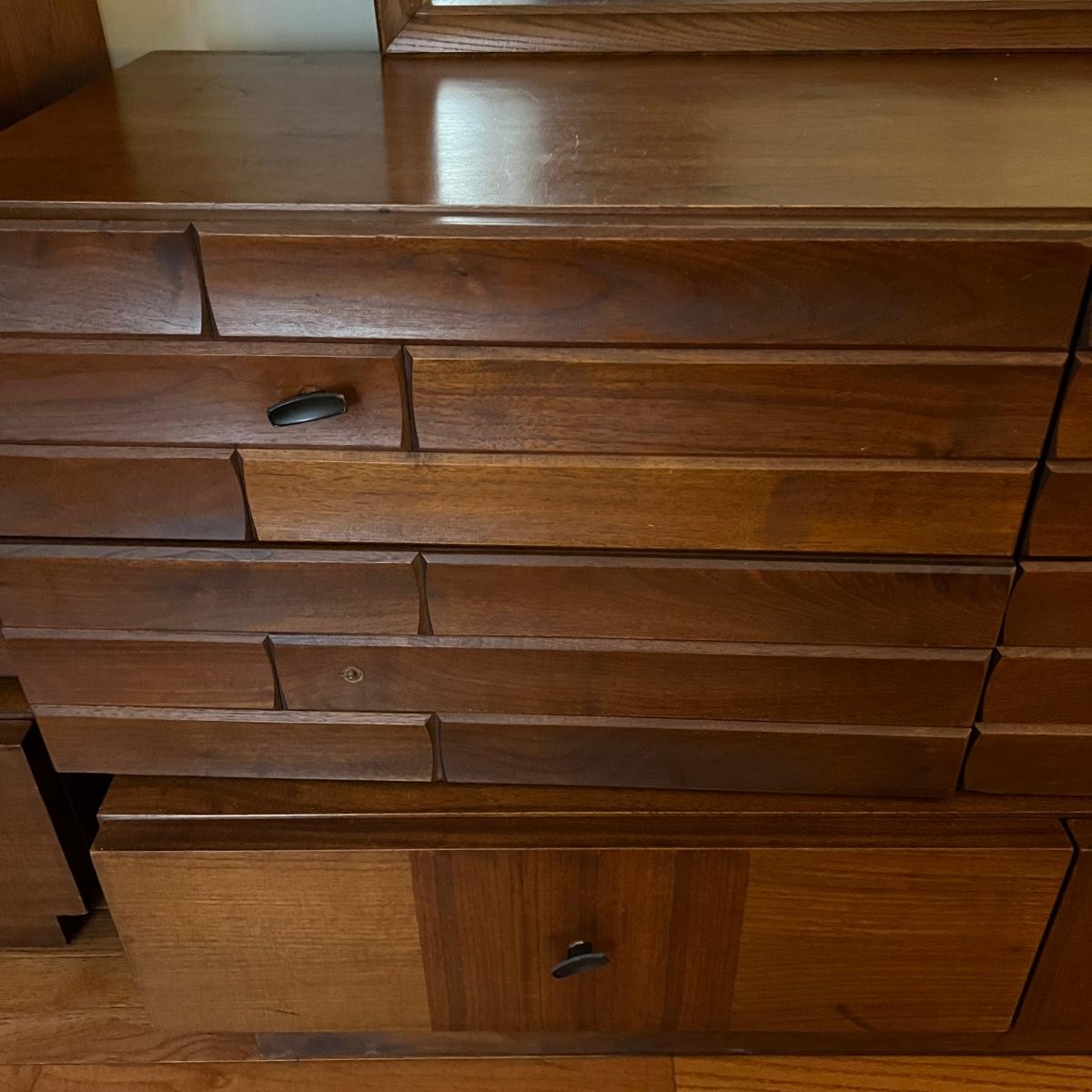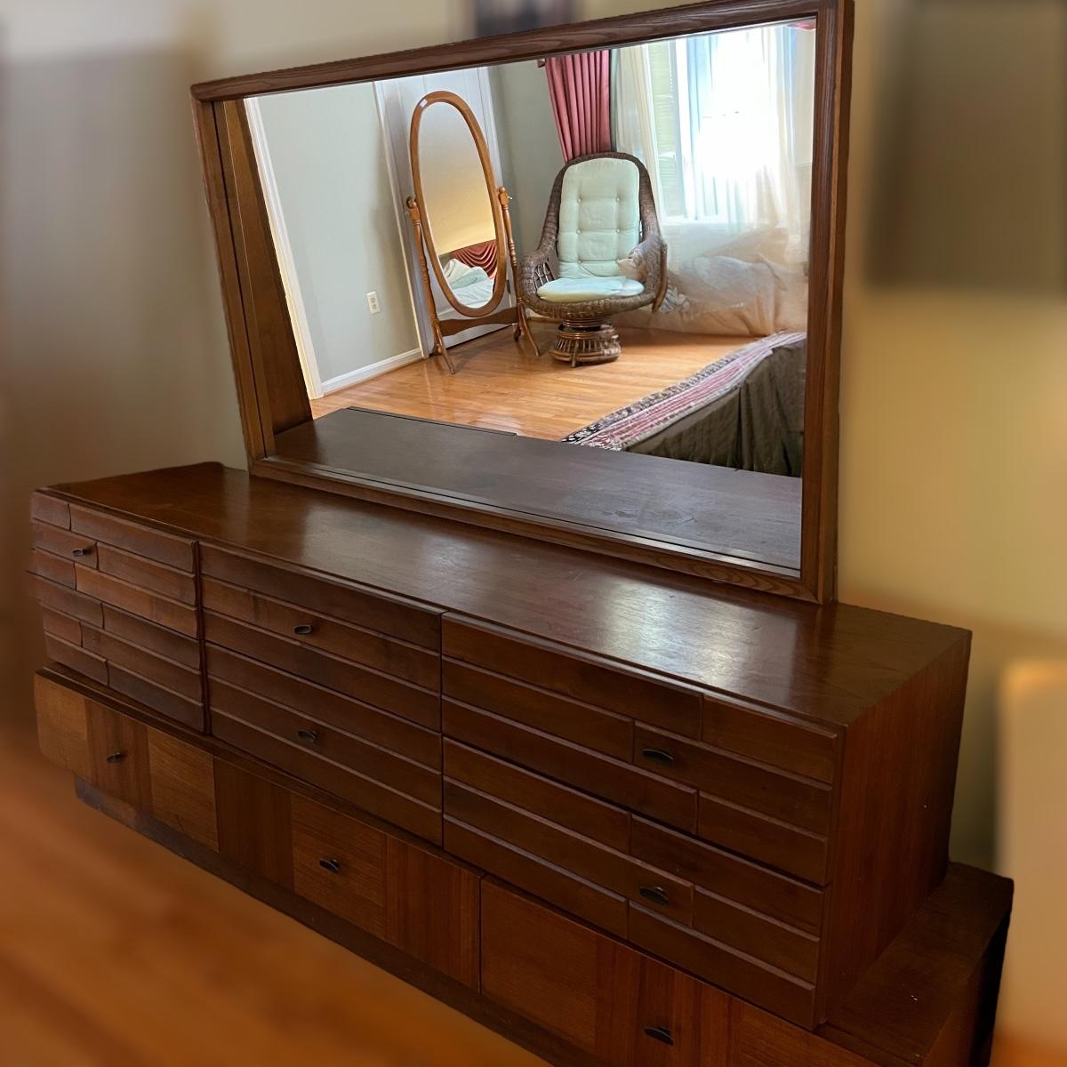 Vintage 9 Drawer Dresser w. Mirror - Early 70's w. MCM Brutalist Style