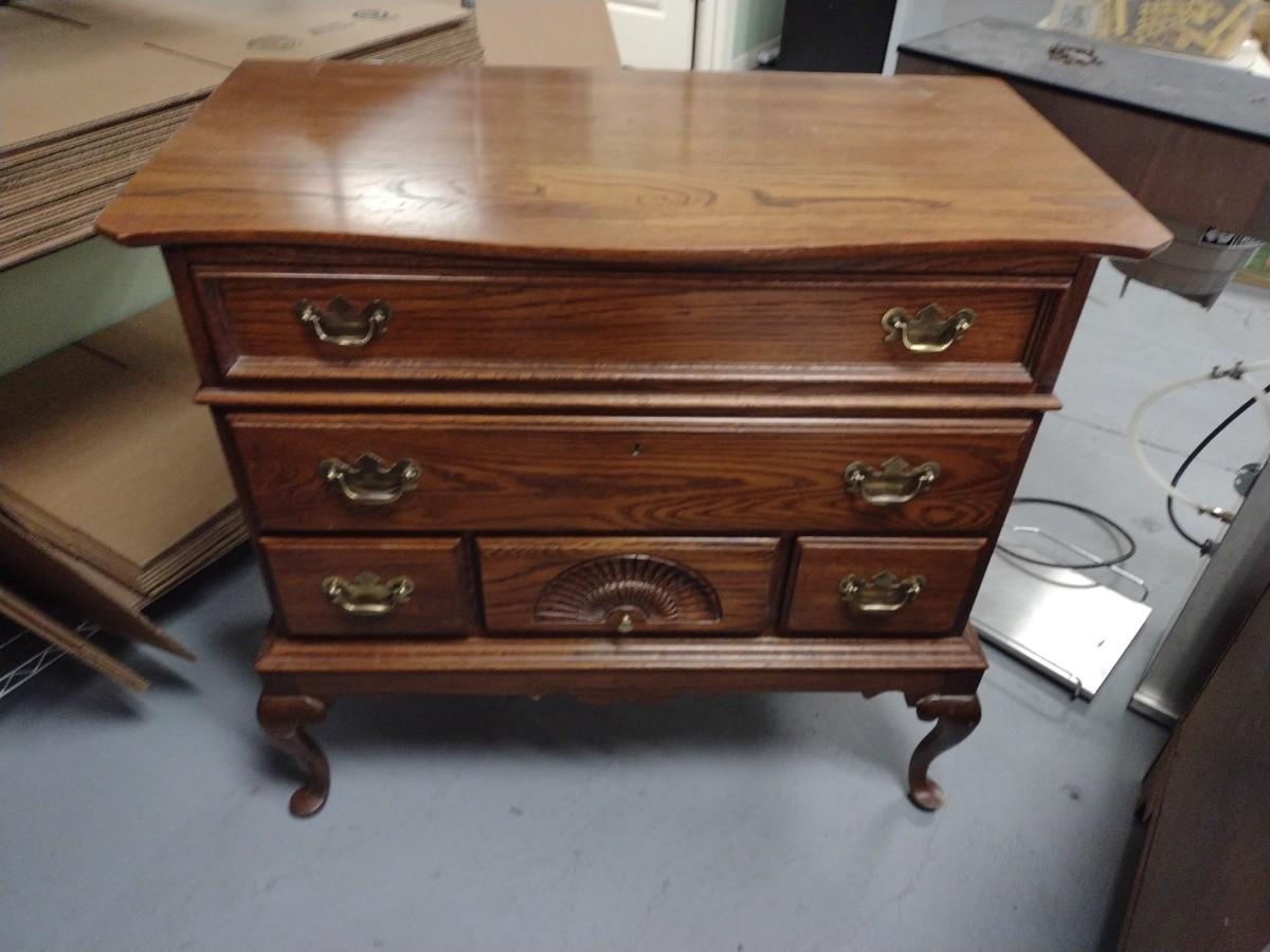 Wood Finish Queen Anne Design Three Drawer Dresser