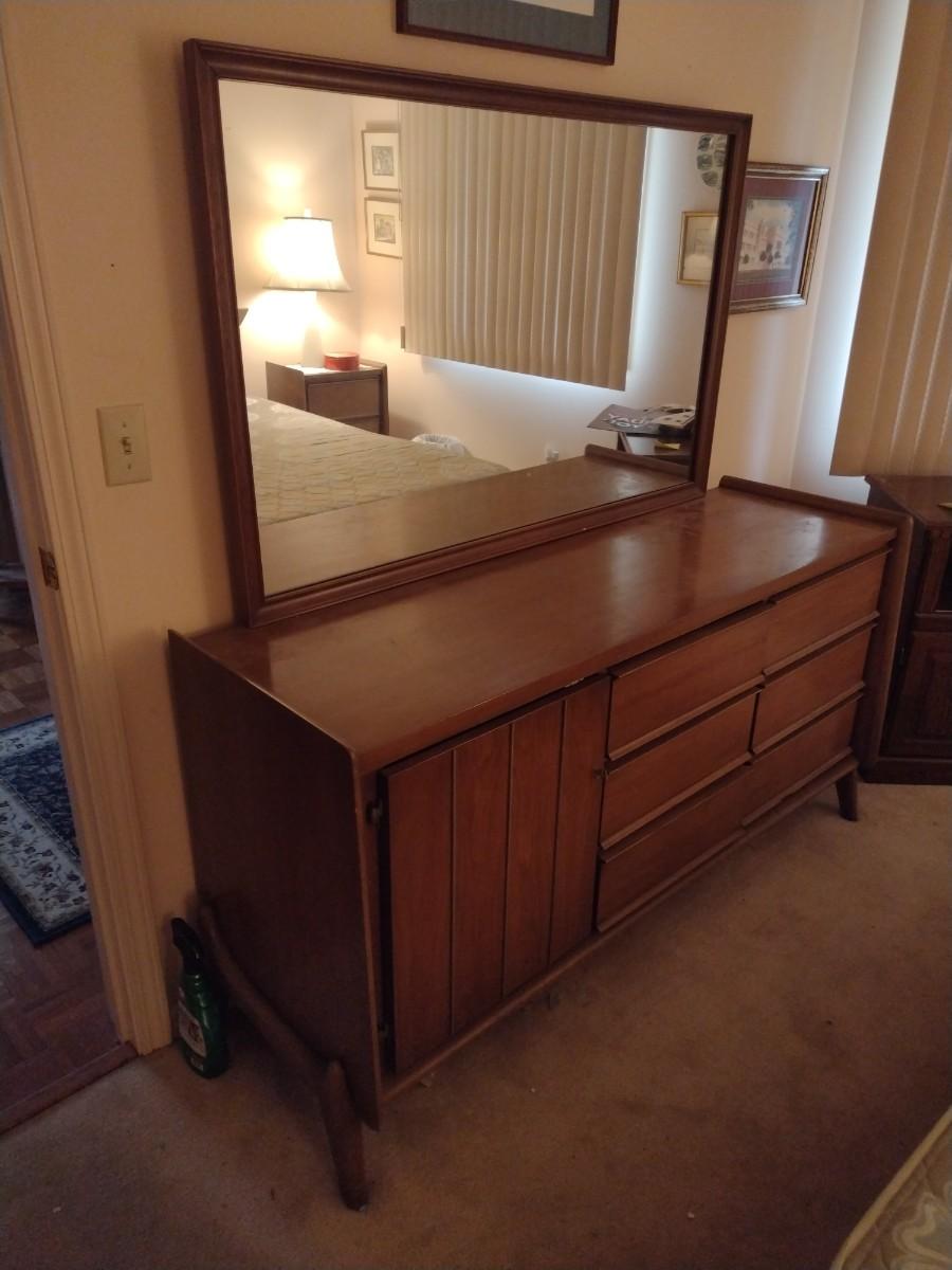 Mid Century Modern Design Dresser with Sweater Drawers and Mirror expect some scratches and wear to the finish