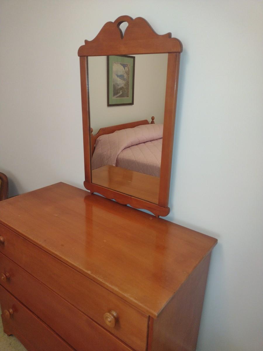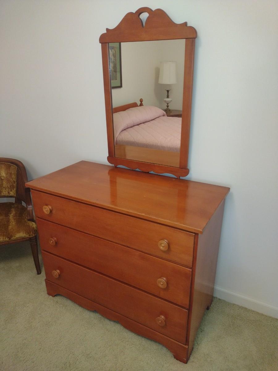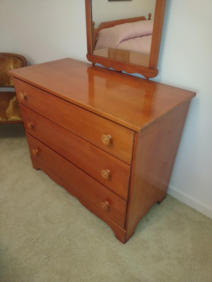 Wood Finish Three Drawer Dresser with Mirror by American Mfg. Concern Falconer, NY