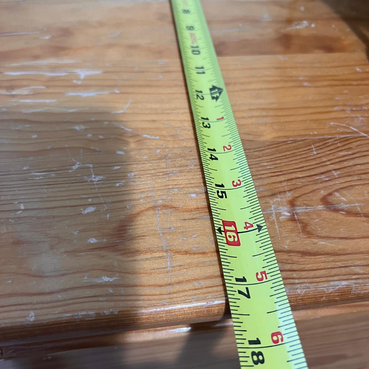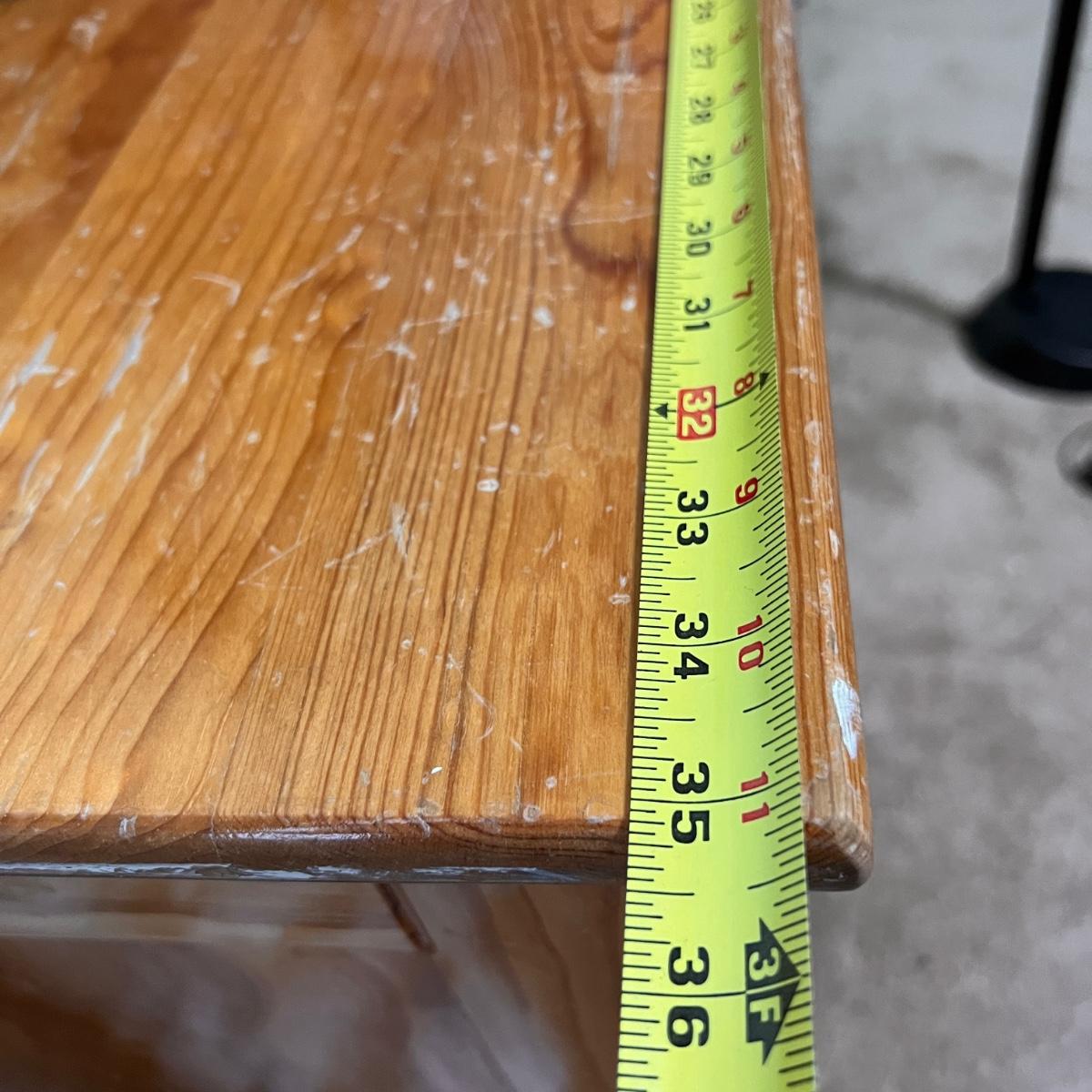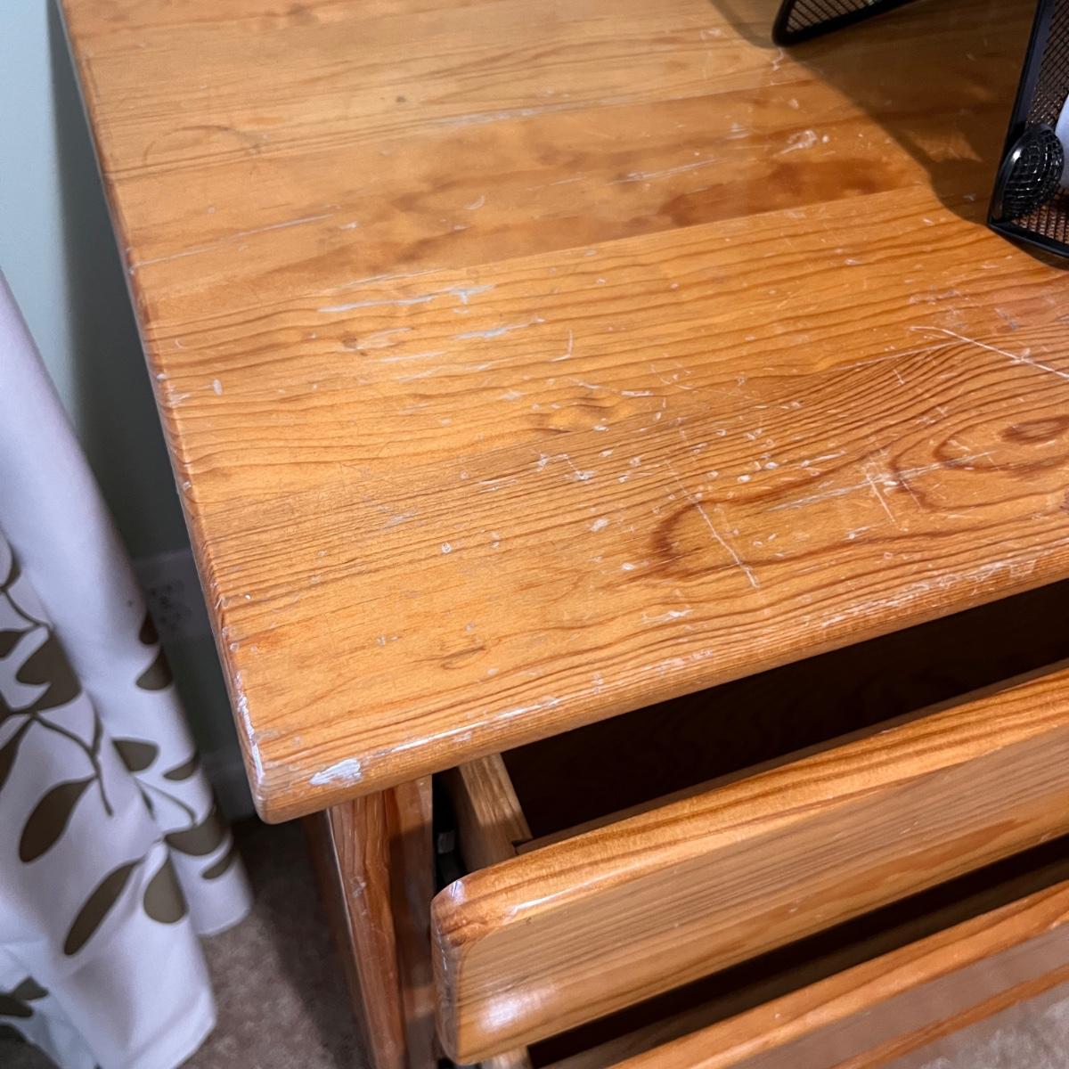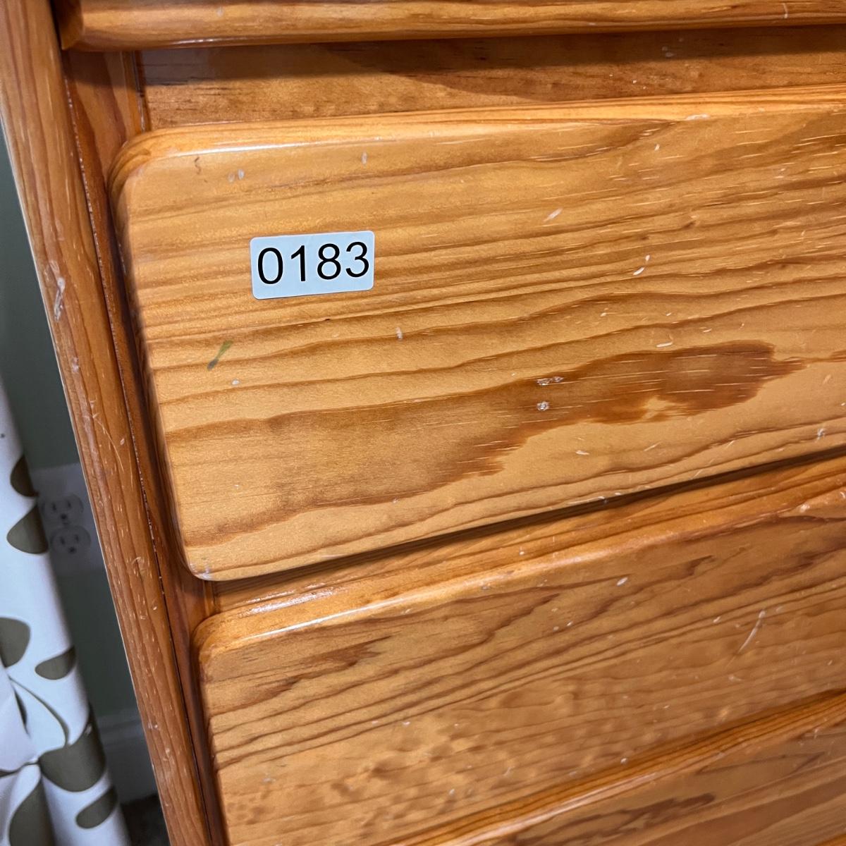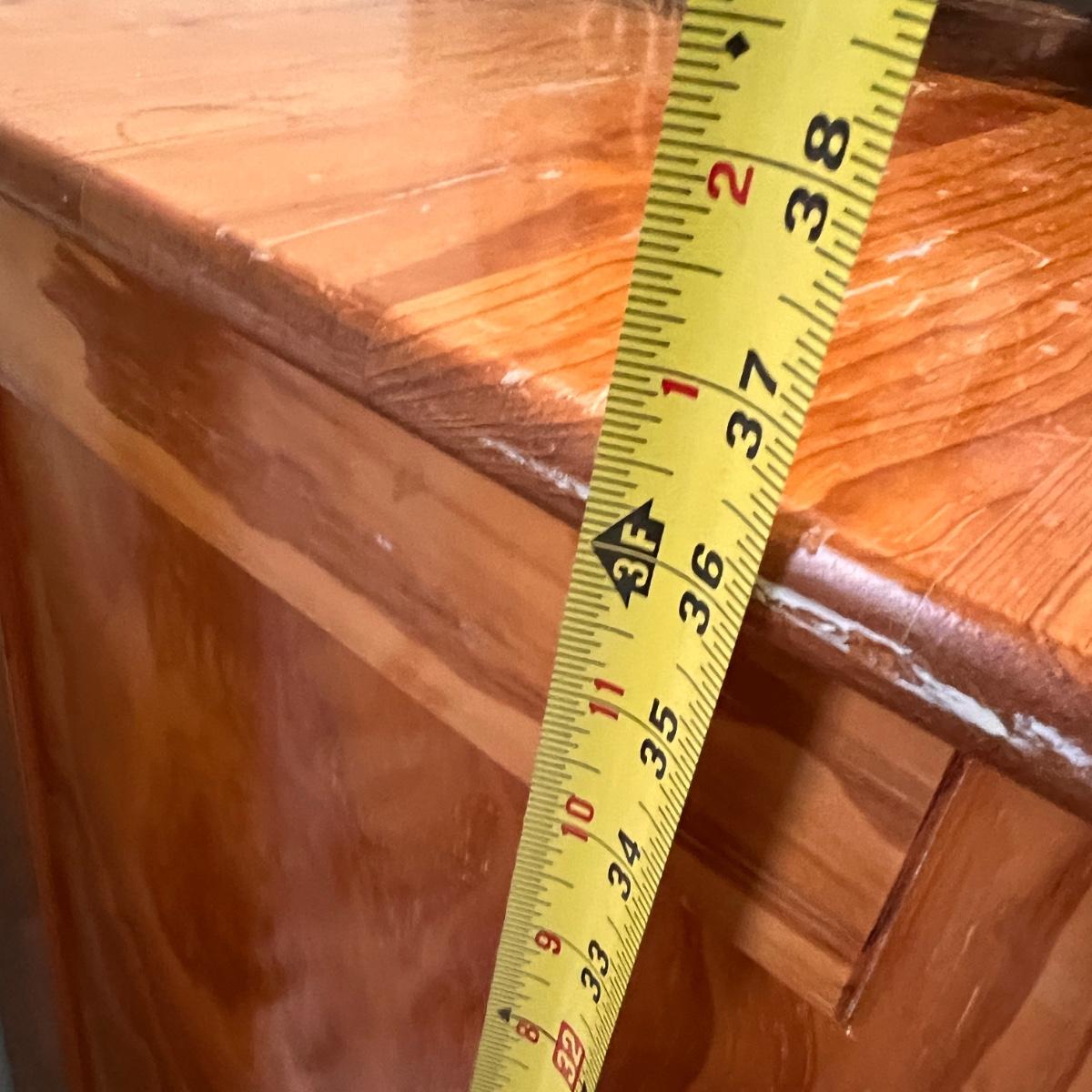 4 drawer solid wood dresser by KinderKraft. See pics for measurements. There are quite a few nicks and scratches, could use a refinishing. But a good piece of furniture, draws are all on tracks.