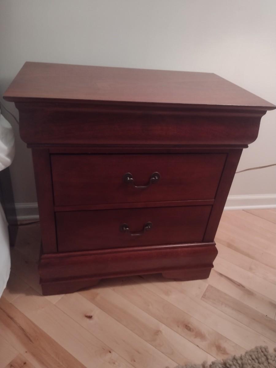 Two Drawer Night Stand- Choice A. Item is upstairs. Please bring assistance, if needed, for safe removal.