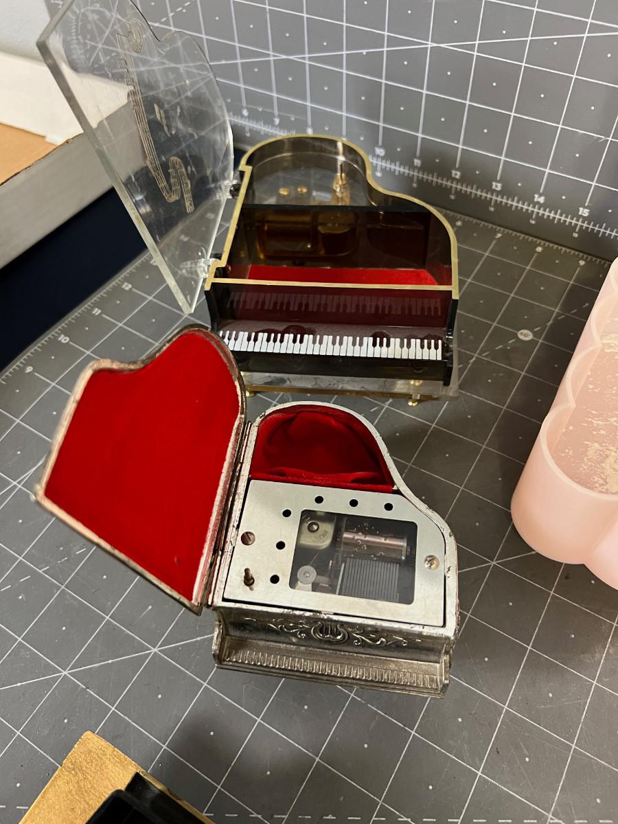Used Various Condition, The Pianos are musical yet the hinge is broken.