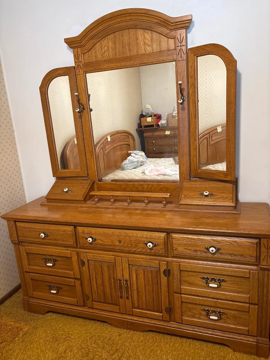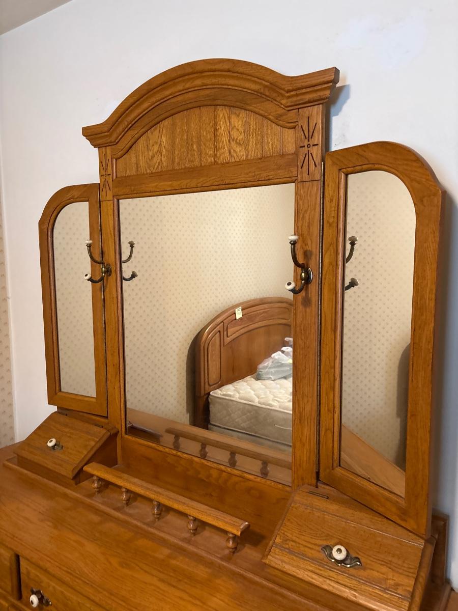 Matches two nightstands shown earlier. 68x18x32, mirror 56x48