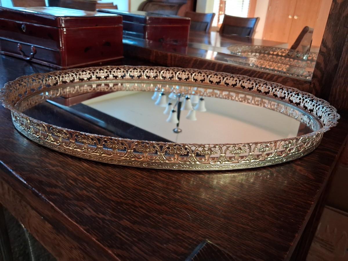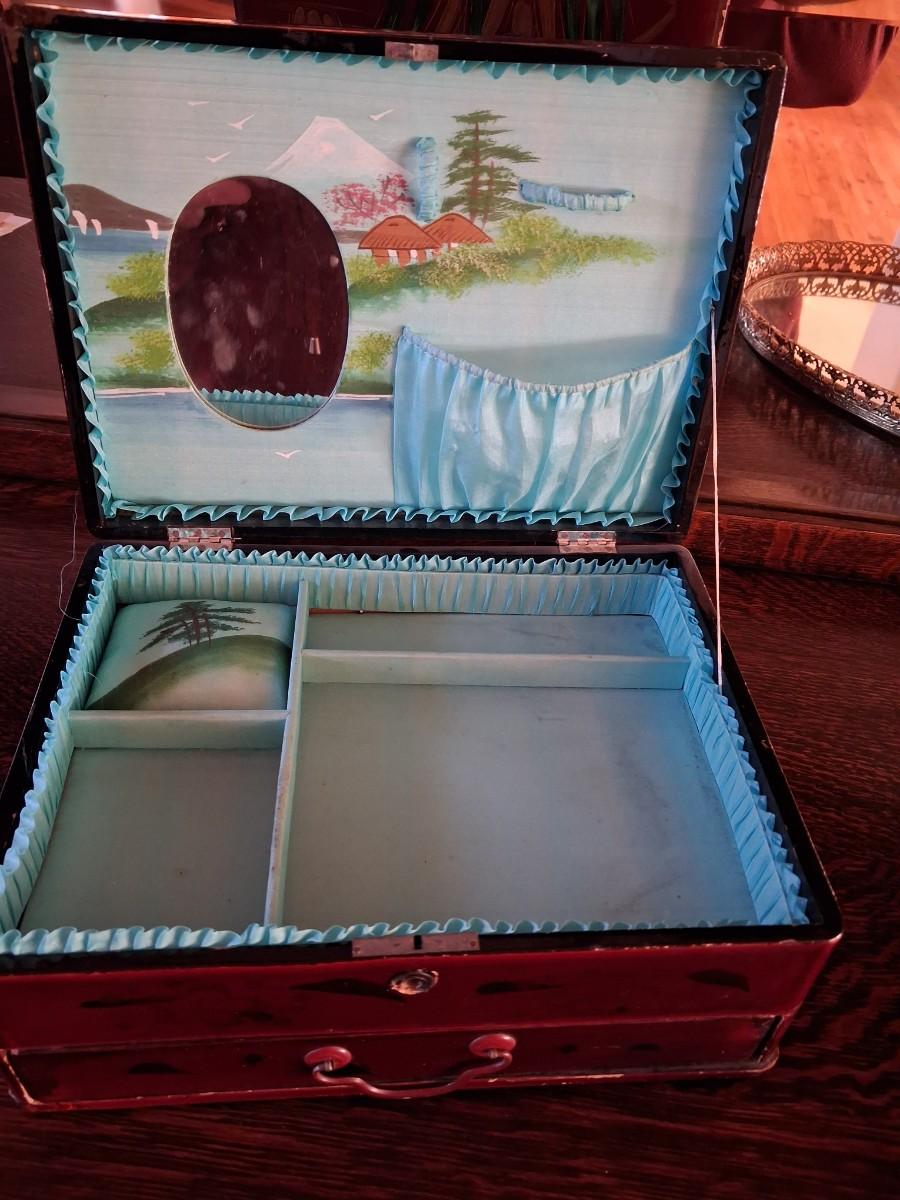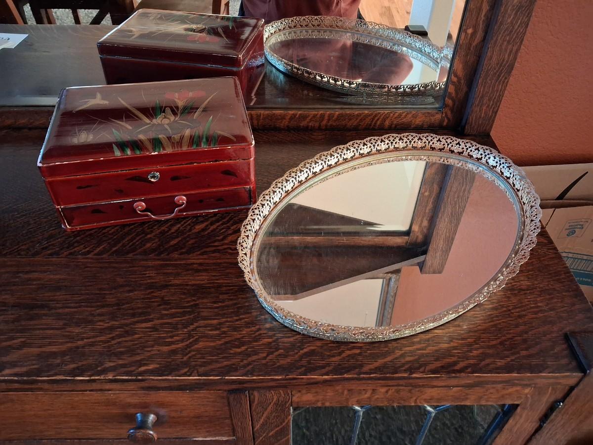 DRESSER MIRROR AND AN ASIAN STYLE JEWELRY BOX