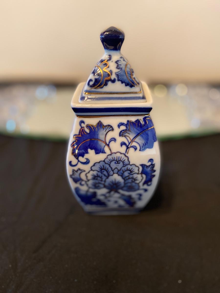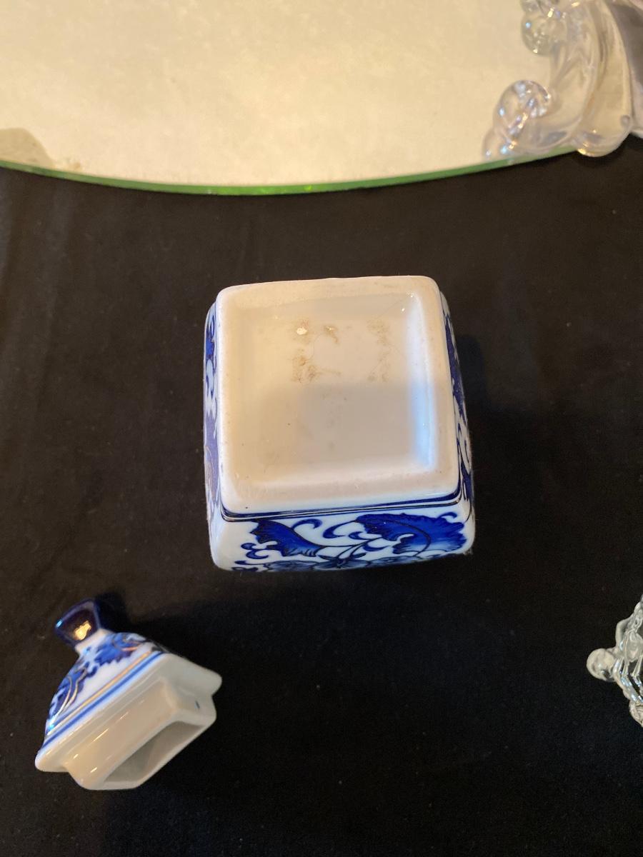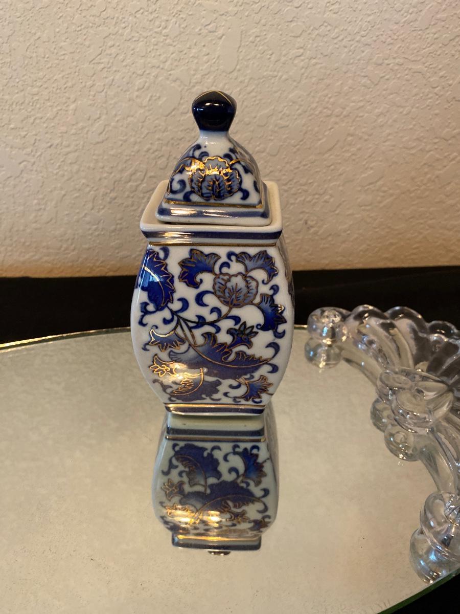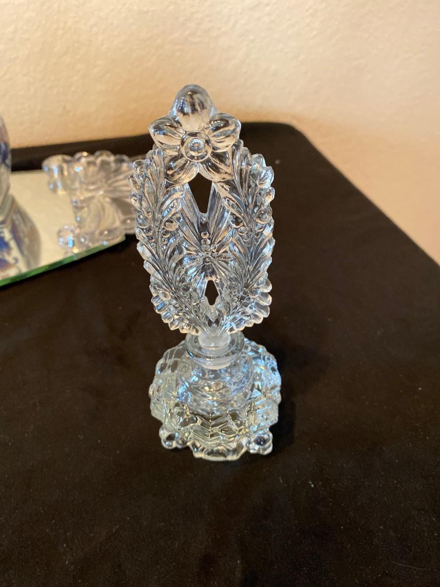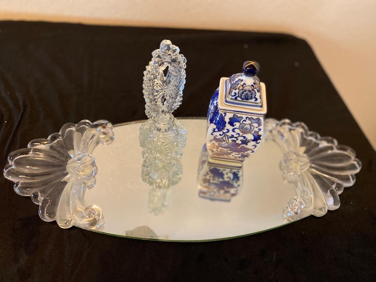 DRESSER SET MIRROR AND PERFUME BOTTLE PLUS GINGER JAR