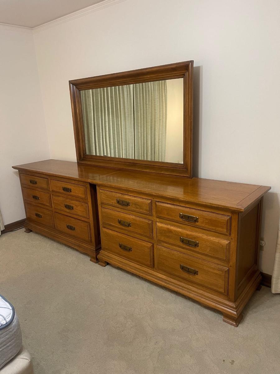 this is a Pair of 6 drawer dressers w mirror added between them. they are by Thomasville
