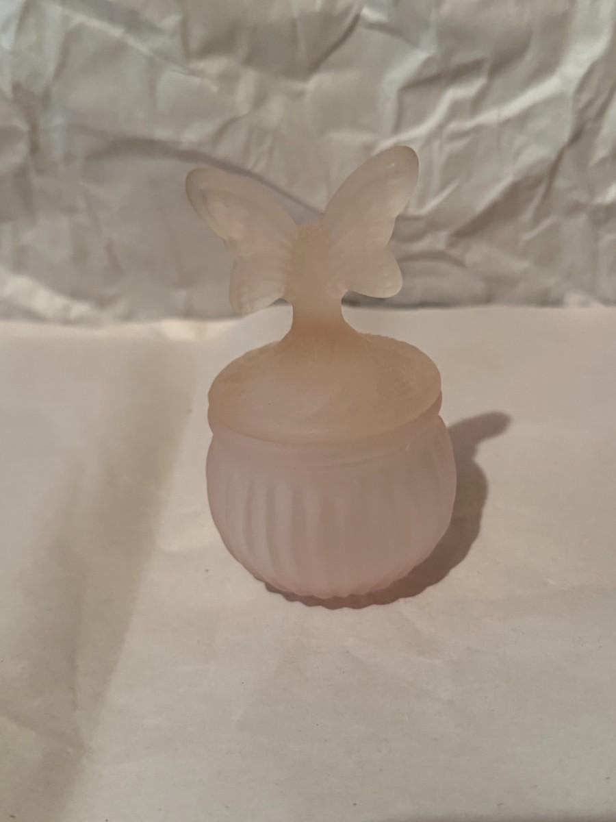 Dresser Vanity Set - Pink Frosted Glass 3 Piece: This lovely set includes three pink frosted pieces, perfect for storage and decoration on your vanity.
