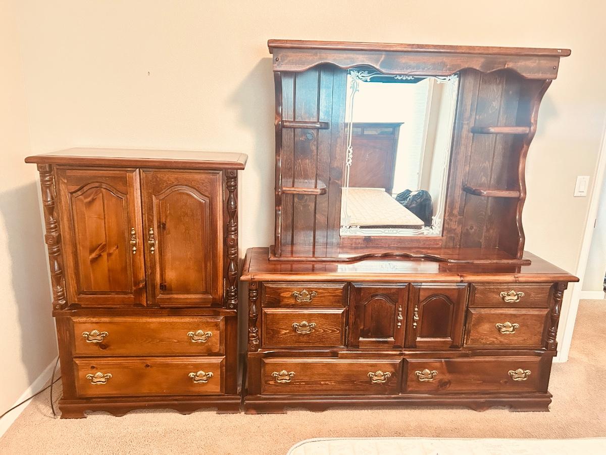 DRESSER WITH MIRROR AND STAND UP DBL DOOR DRESSER