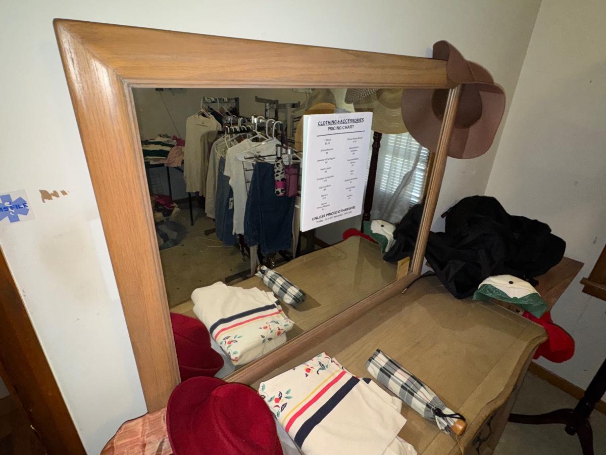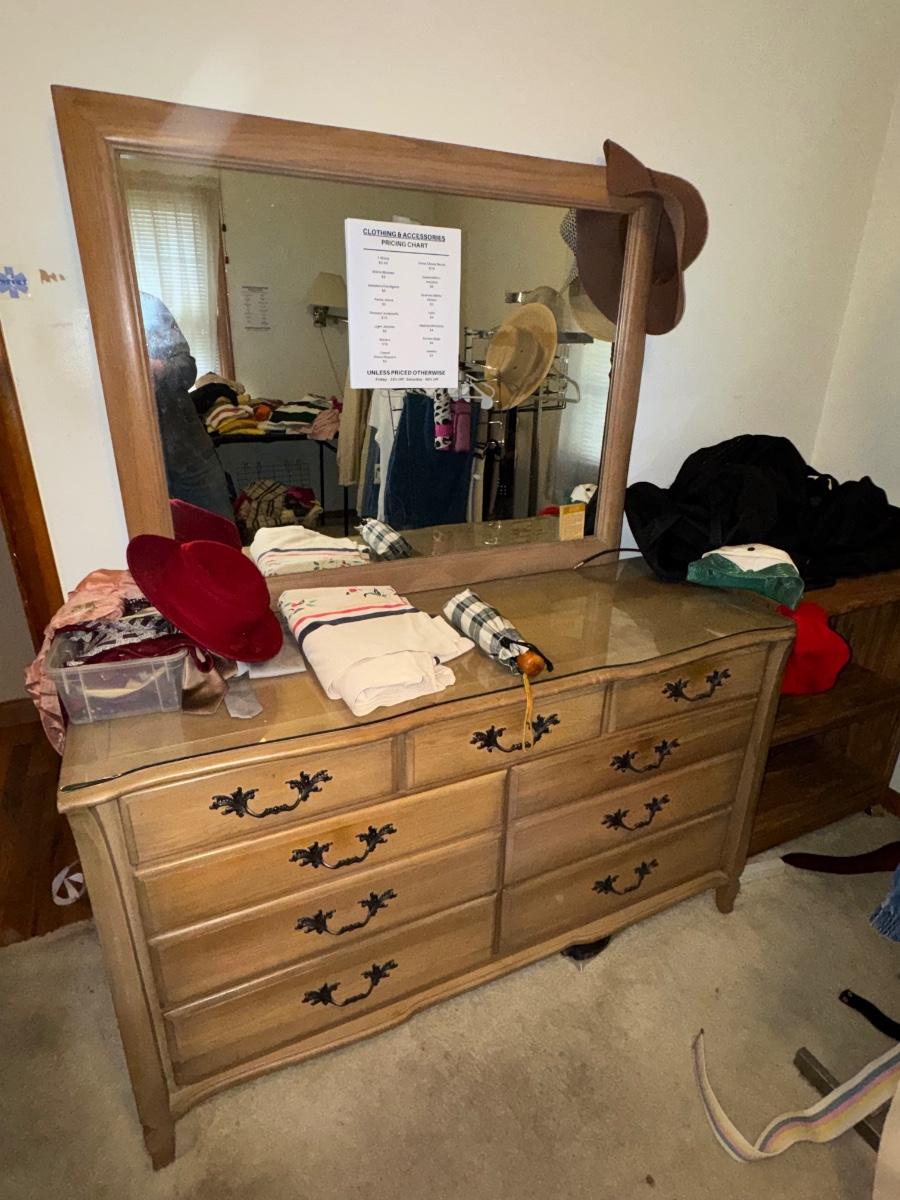 DRESSER WITH MIRROR IN CLOTHING ROOM