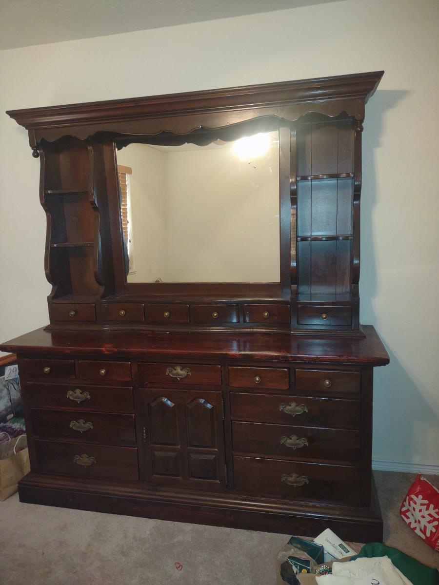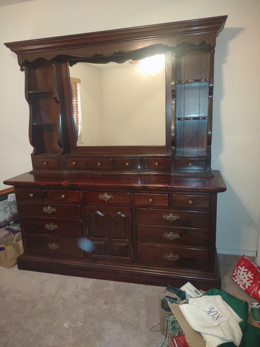 13 DRAWER DRESSER W/MIRRORED HUTCH