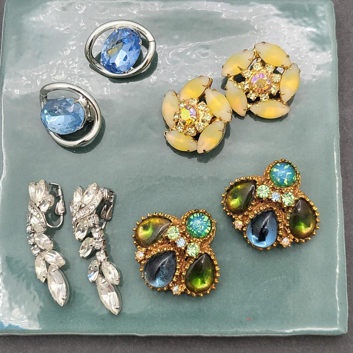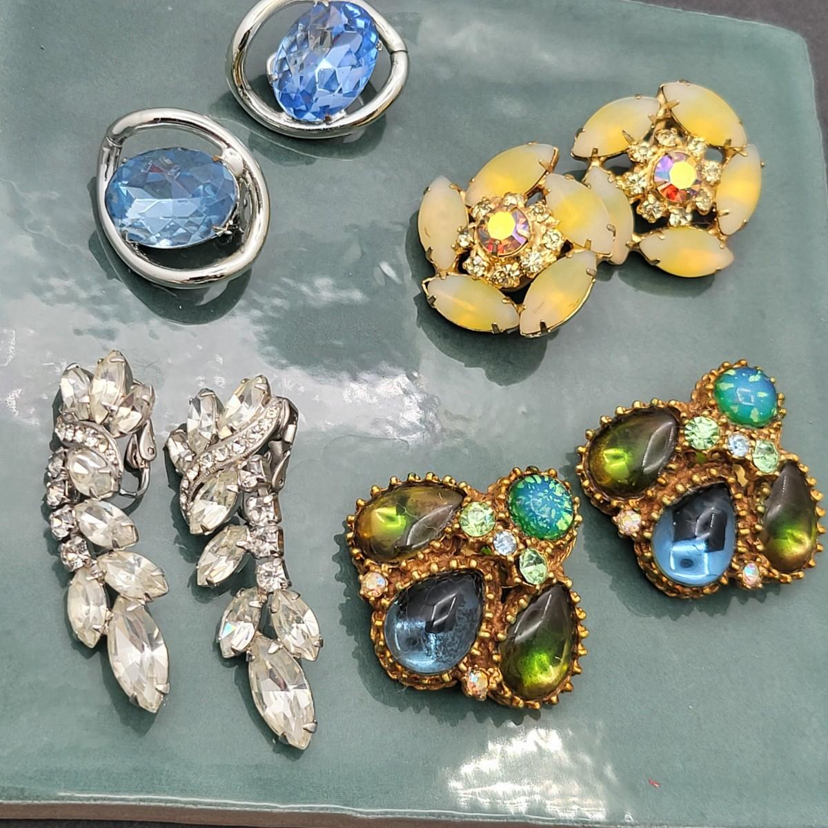 Beautiful variety of vintage rhinestone clip earrings, perfect to add pizzazz to any outfit!