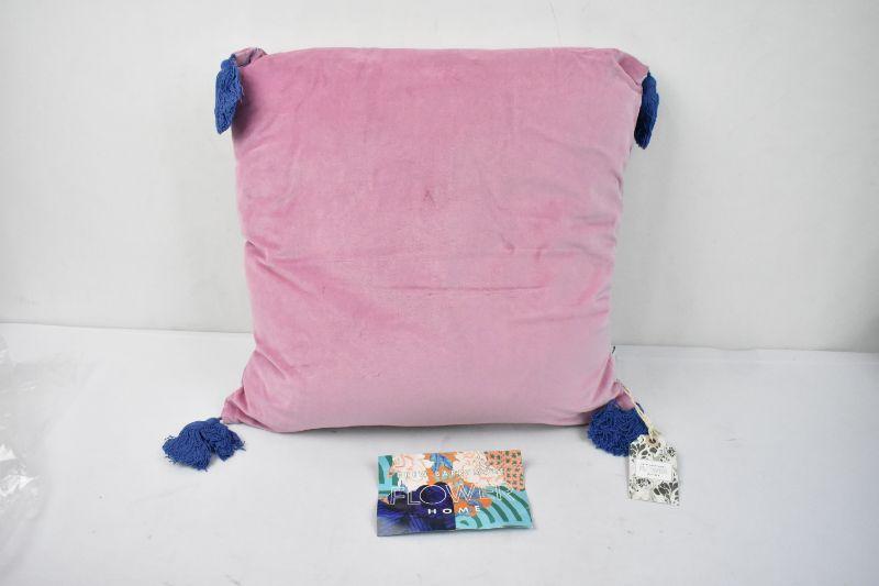 Drew Barrymore Flower Home Decorative Pillow: Orchid Pink with Blue Tassels 20" x 20" - New