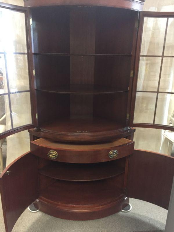 Vintage Drexel corner cabinet in good condition. Measures 36"w x 70"t