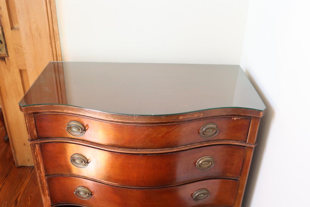Visible Paint chipping on the sides of chest, see photos. Comes with a Glass Top.