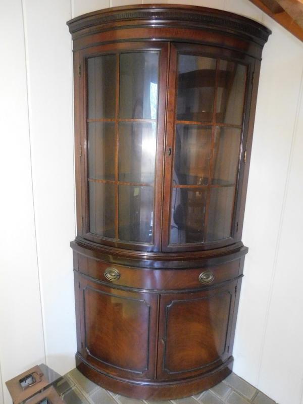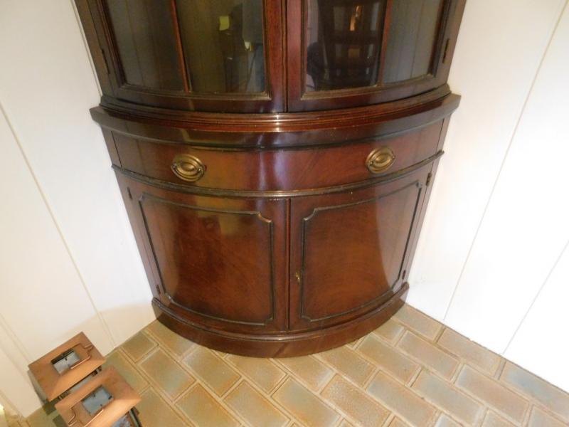 Drexel Mahogany Bowfront Corner Glass Face Hutch. Very nice condition. Please check comparable sales. Reserve on this item.