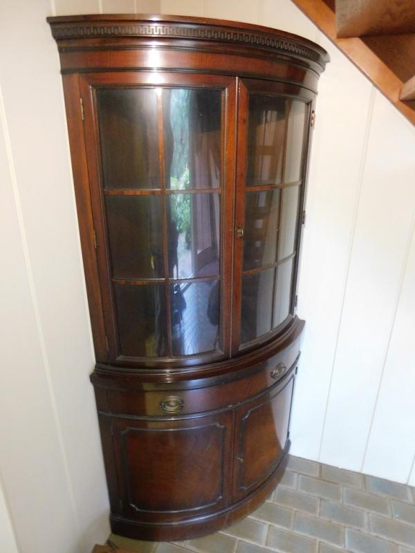 Drexel Mahogany Bowfront Corner Glass Face Hutch