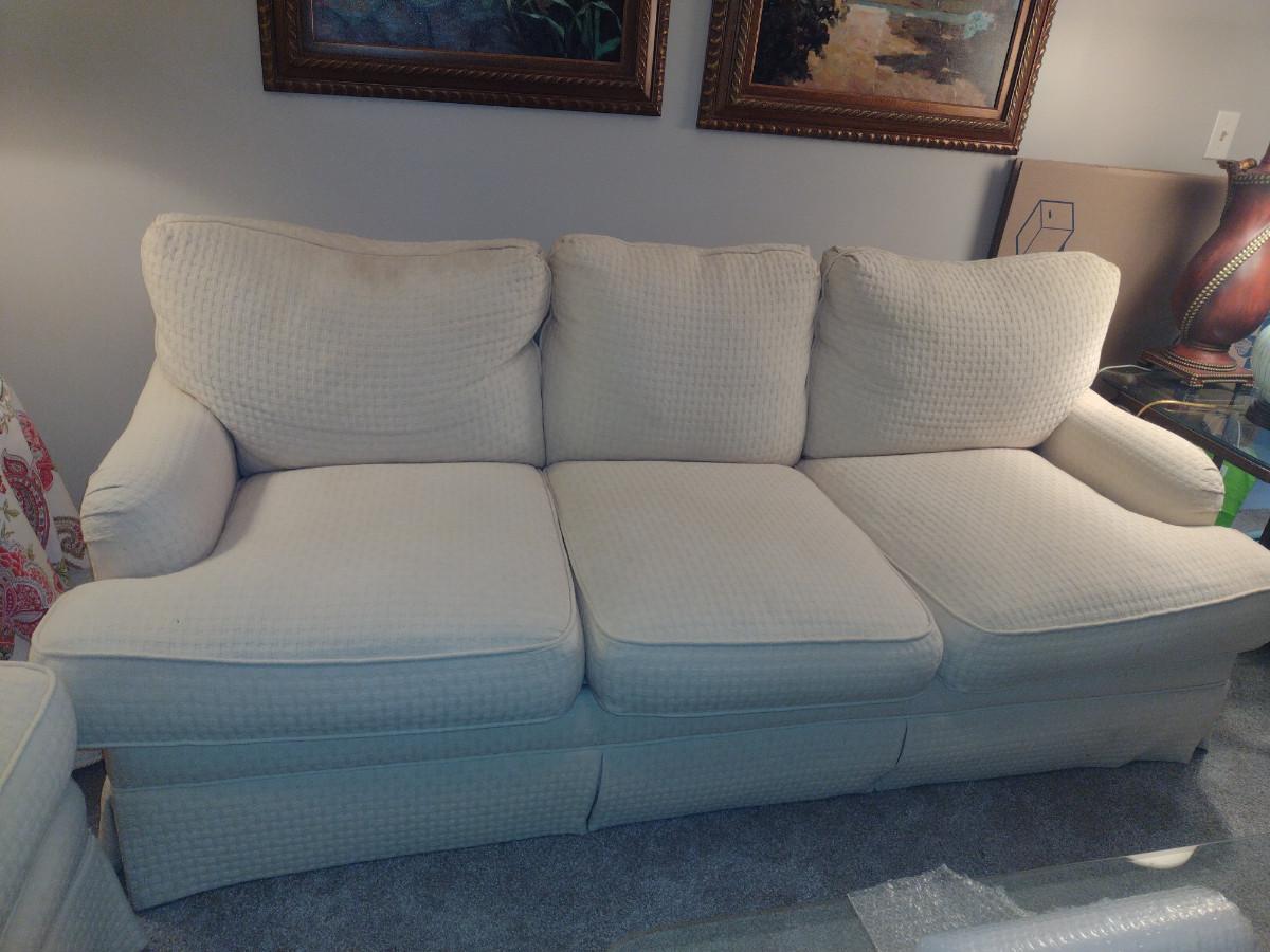 Drexel Three Cushioned White Sleeper Sofa- Approx 80" Long