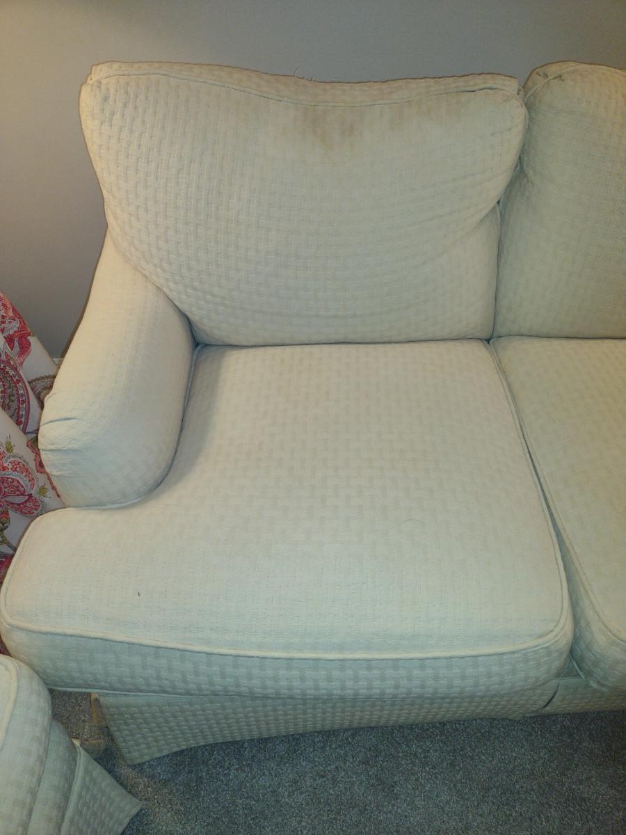 Drexel Sleeper Sofa- Approx 80" Long. Top cushions are attached. Please see all pictures- stained area on top.
