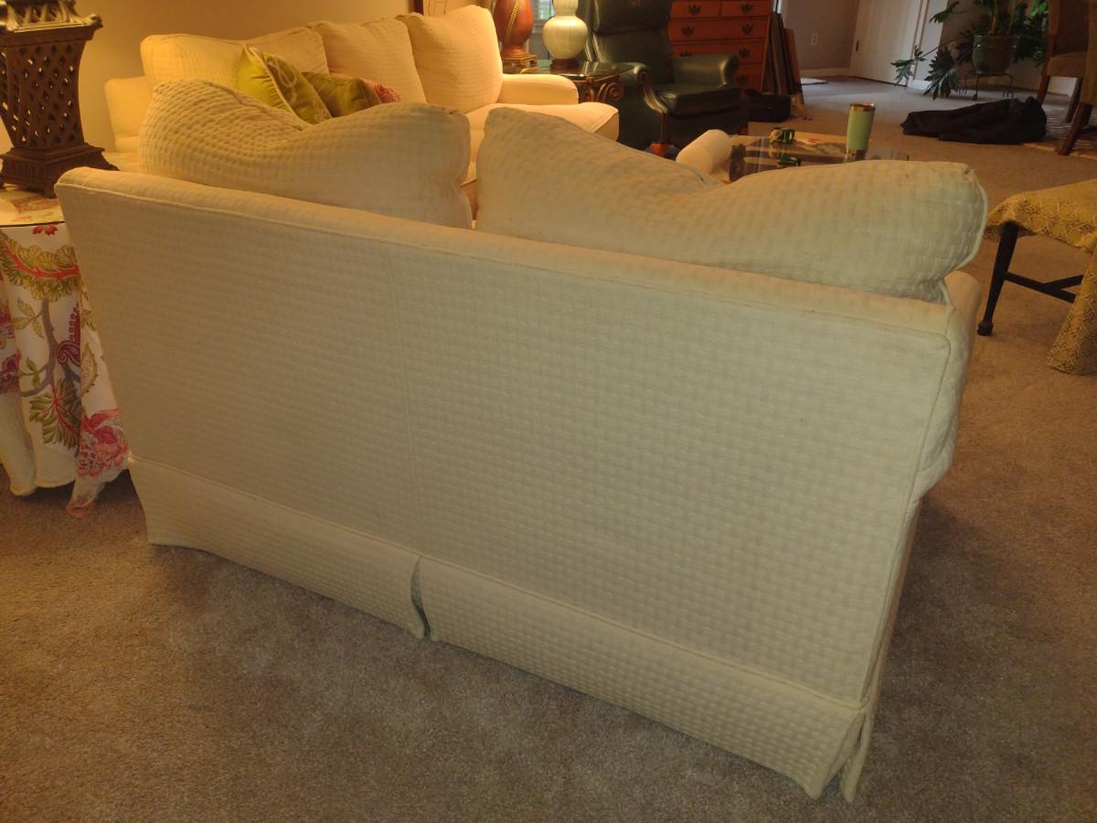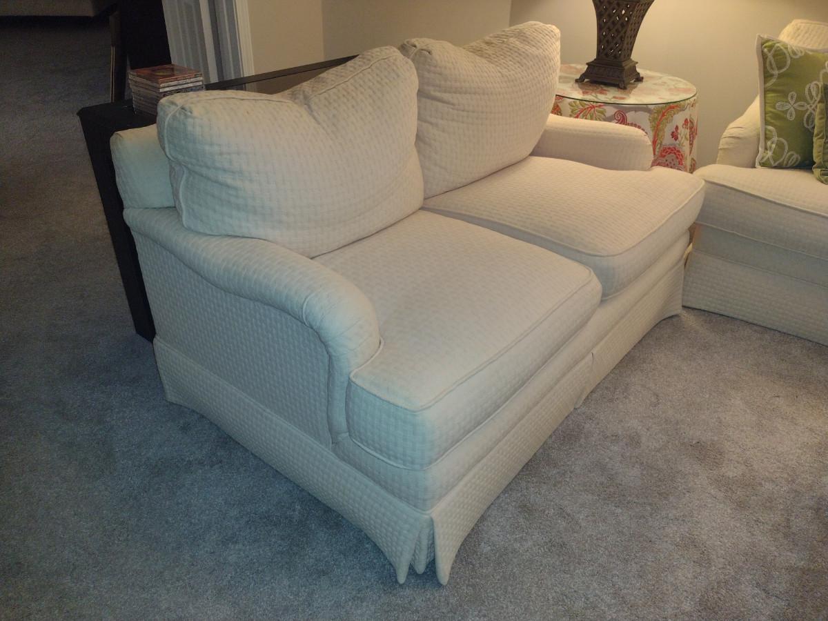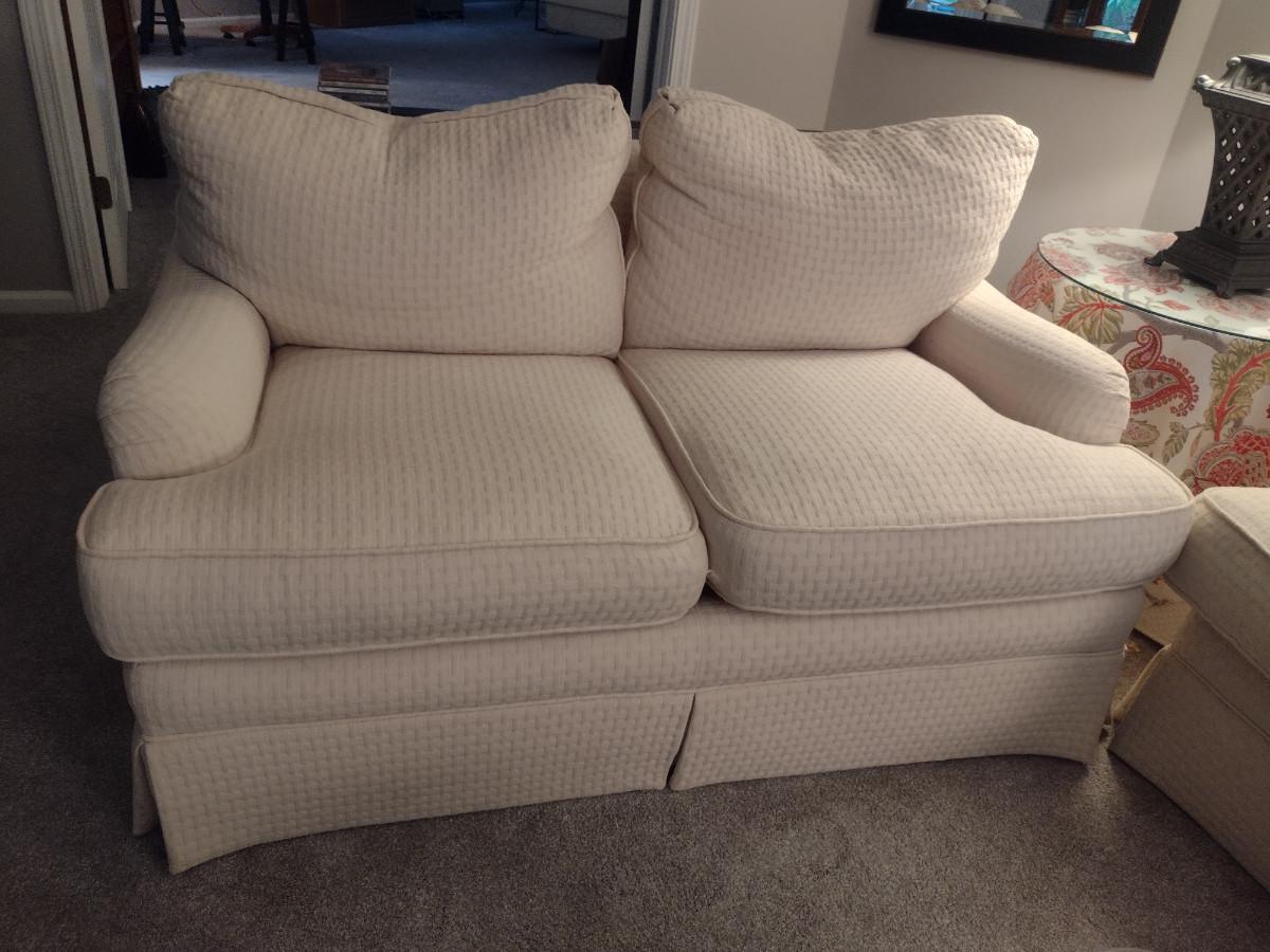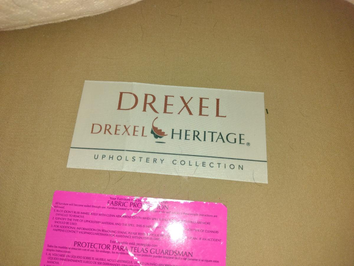 Drexel Upholstered Love Seat. Approx 57" long. Top cushions are attached.