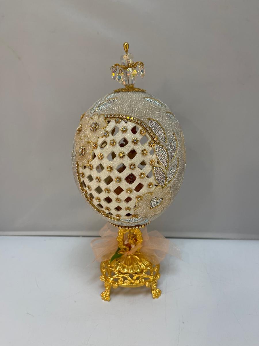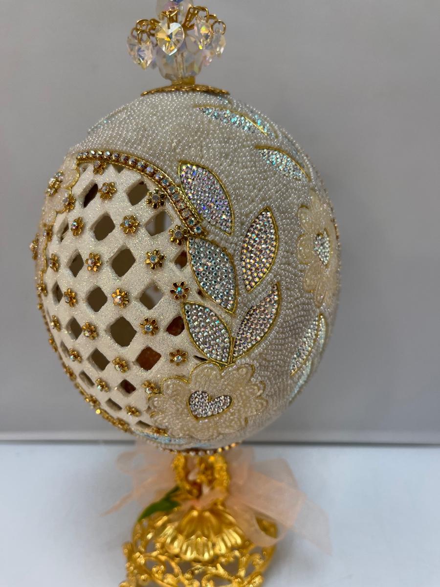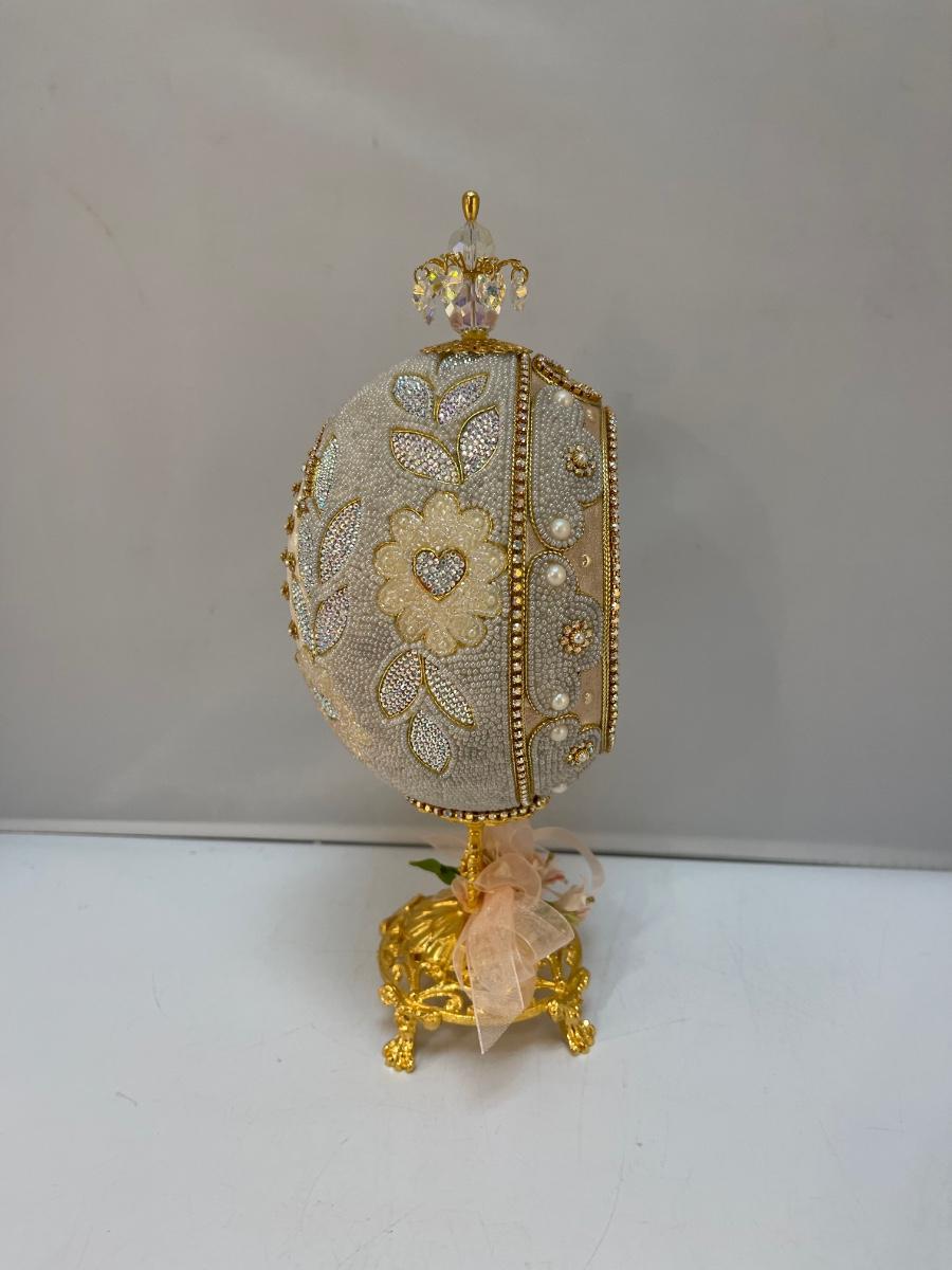 Large Vintage Ostrich Egg Diorama Scene Beaded Faberge Style