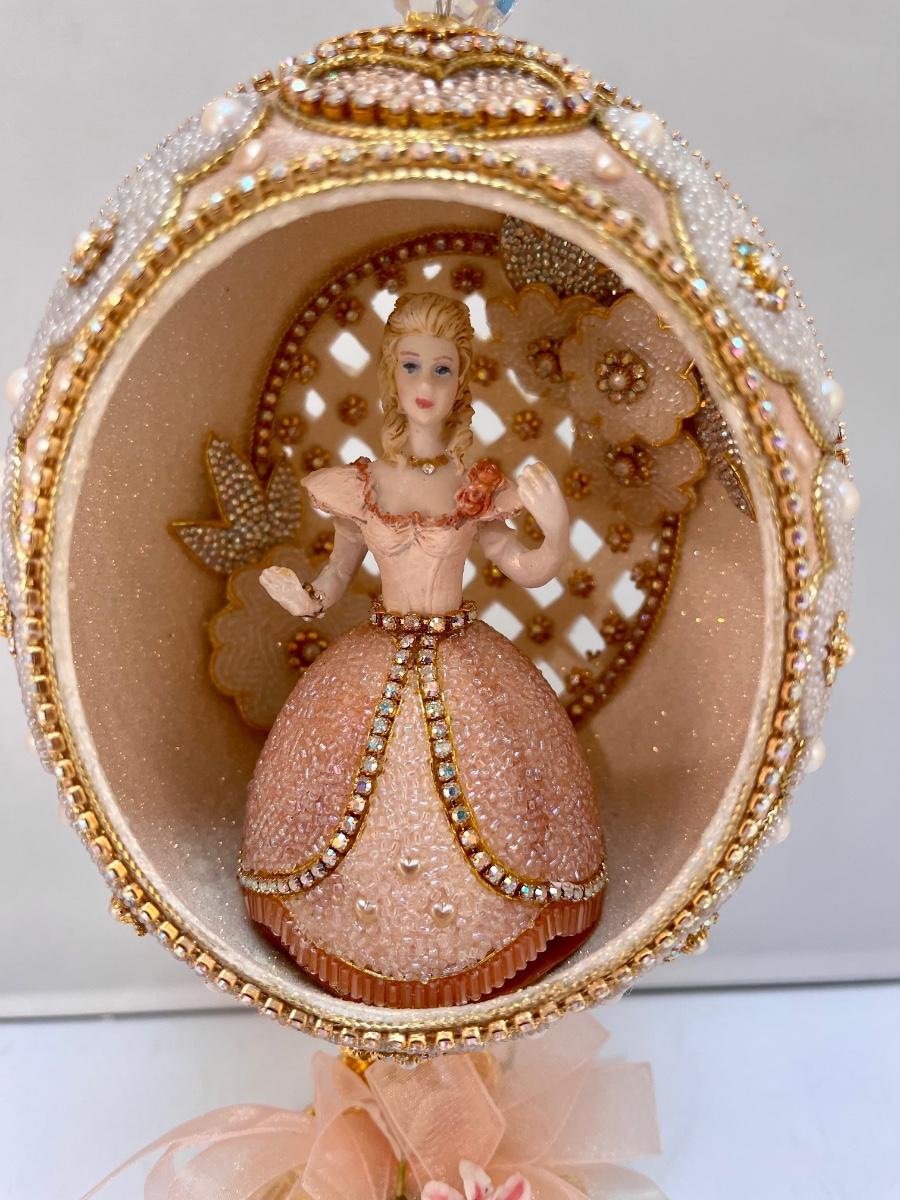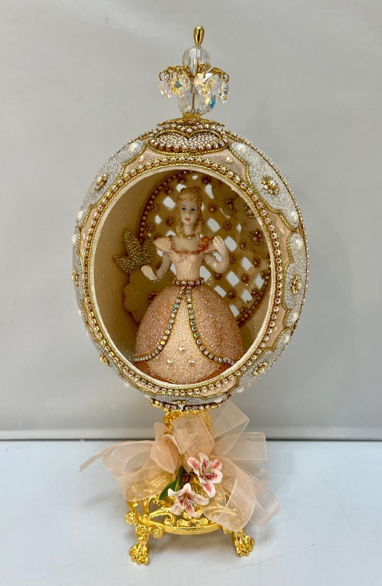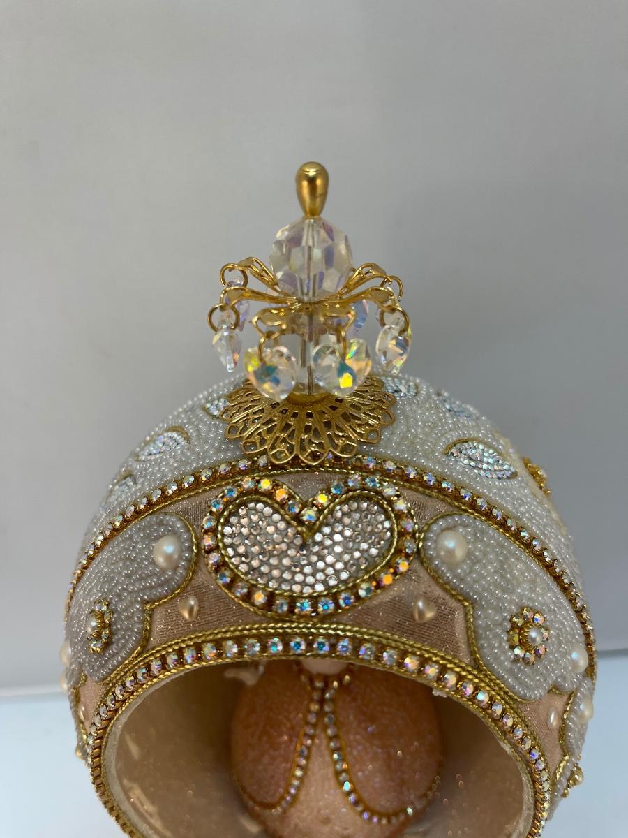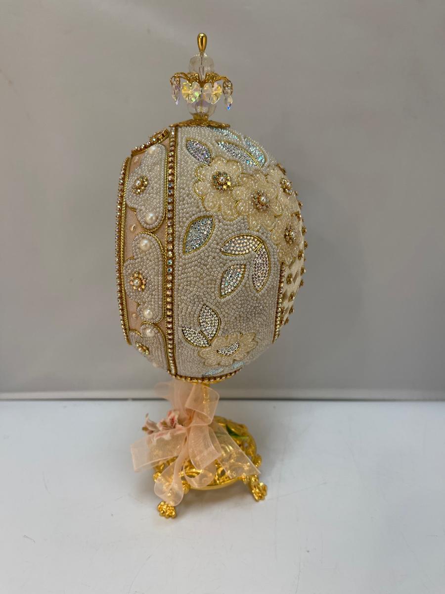Large Vintage Ostrich Egg Diorama Scene Beaded Faberge Style