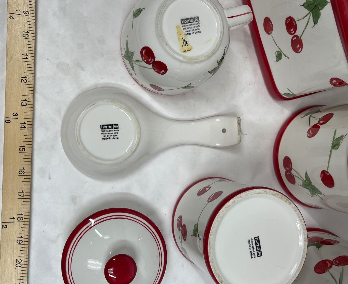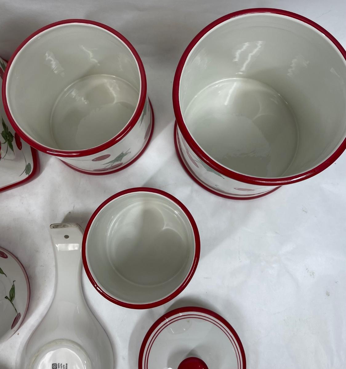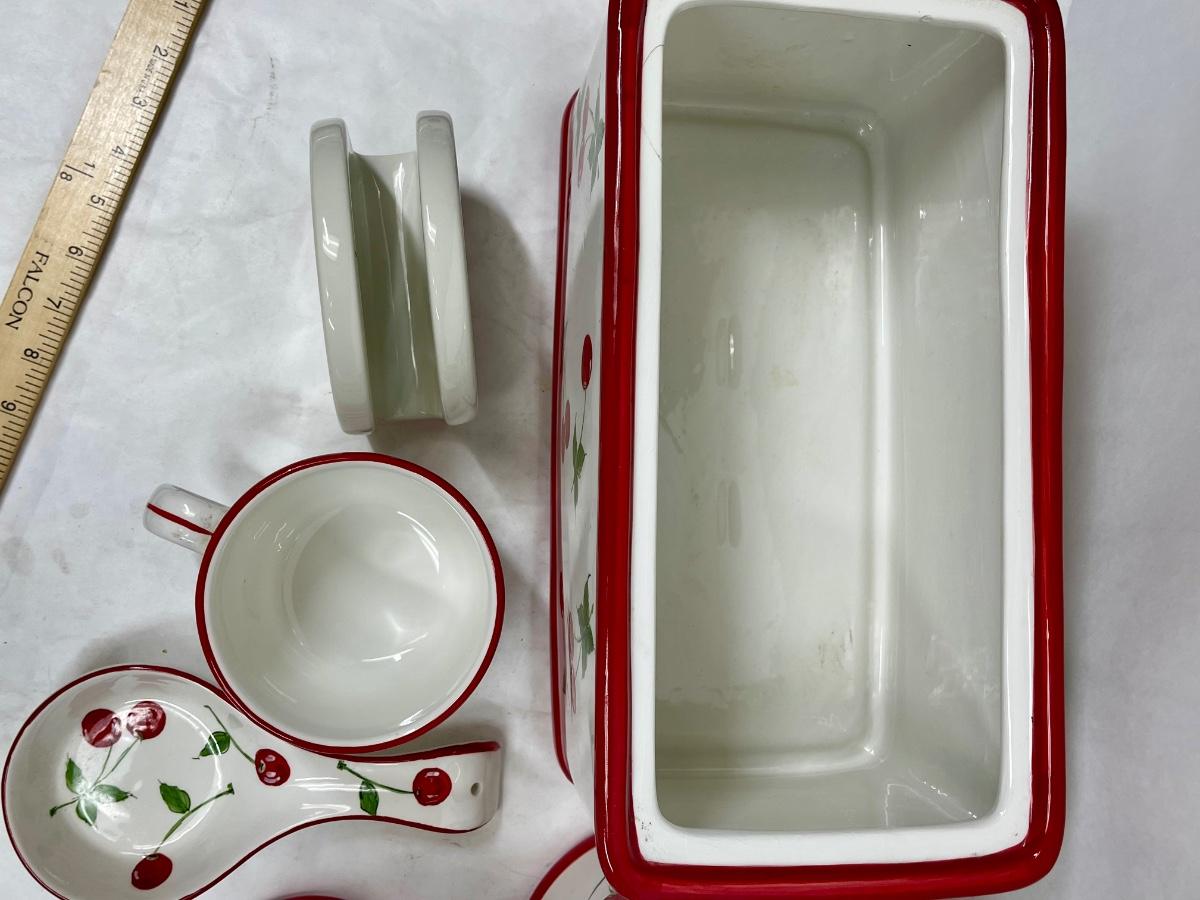 Ceramic Cherry, red & white, Kitchen Canisters, Bread Box, Spoon-rest, Napkin Holder, Mug