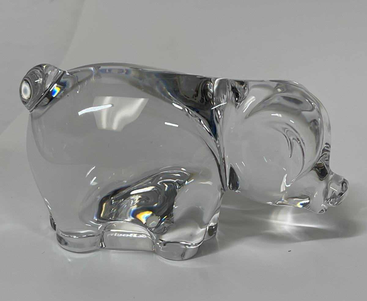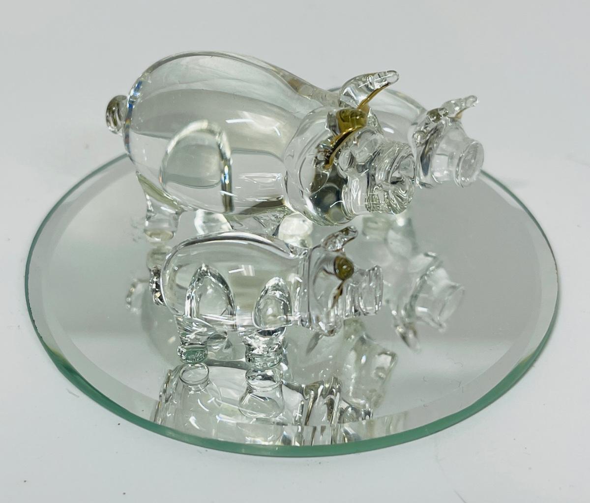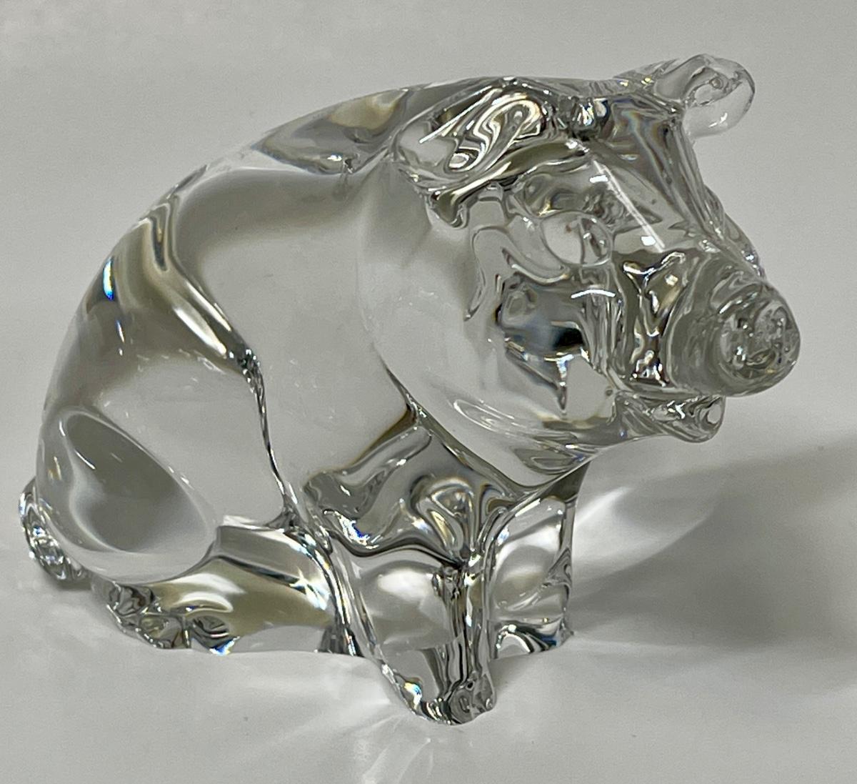 Includes a German-made small piggy bank, some faceted crystal pigs, a larger paperweight pig, and etched image of a pig in a cube, and more.