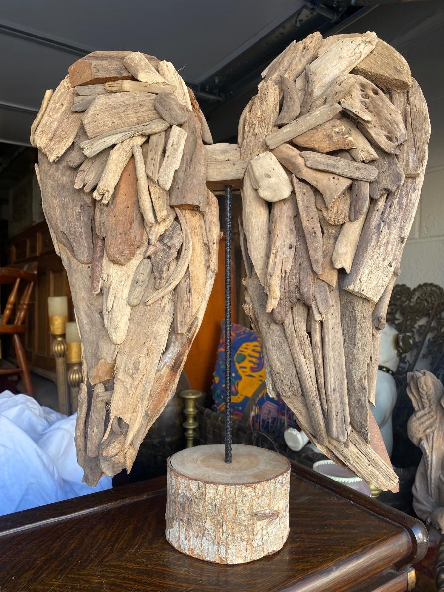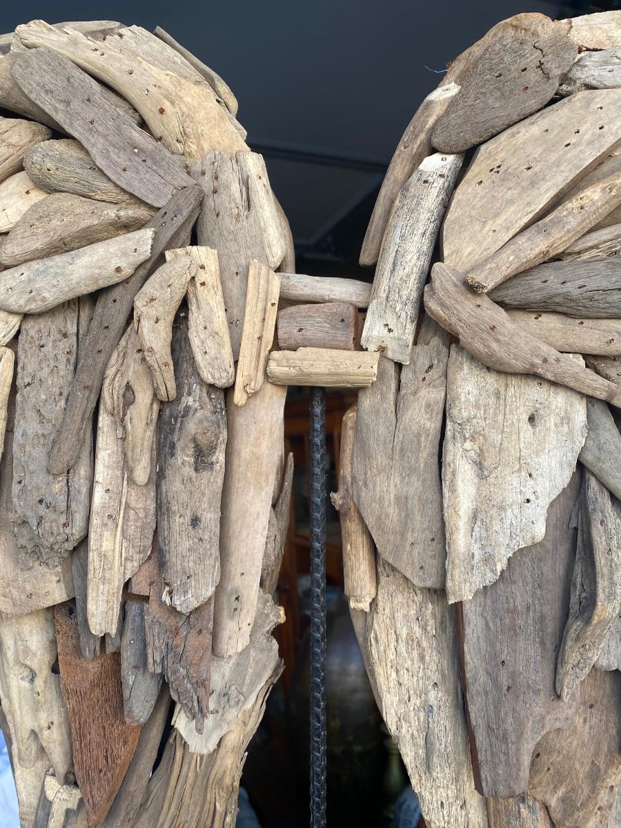 Our stunning Driftwood Angel wings have been hand crafted with solid driftwood pieces and attached to wooden base