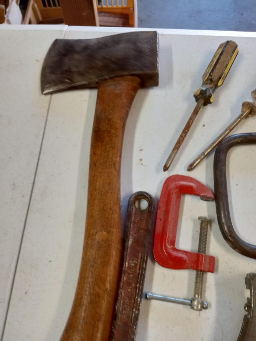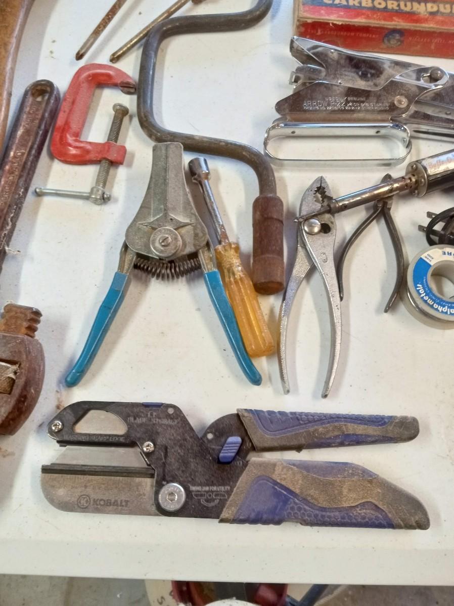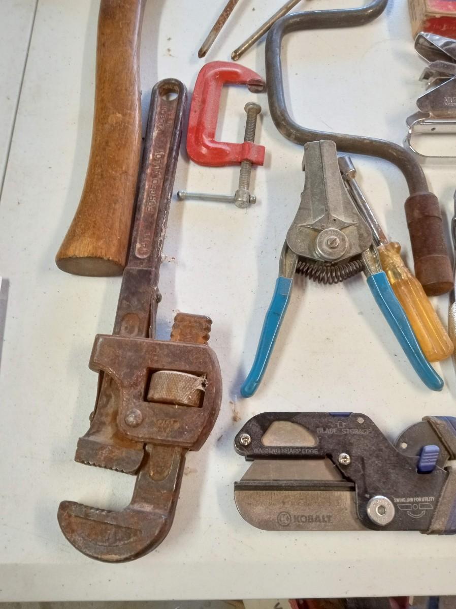 DRILL BITS AND A COLLECTION OF HAND TOOLS
