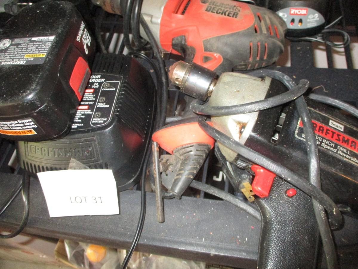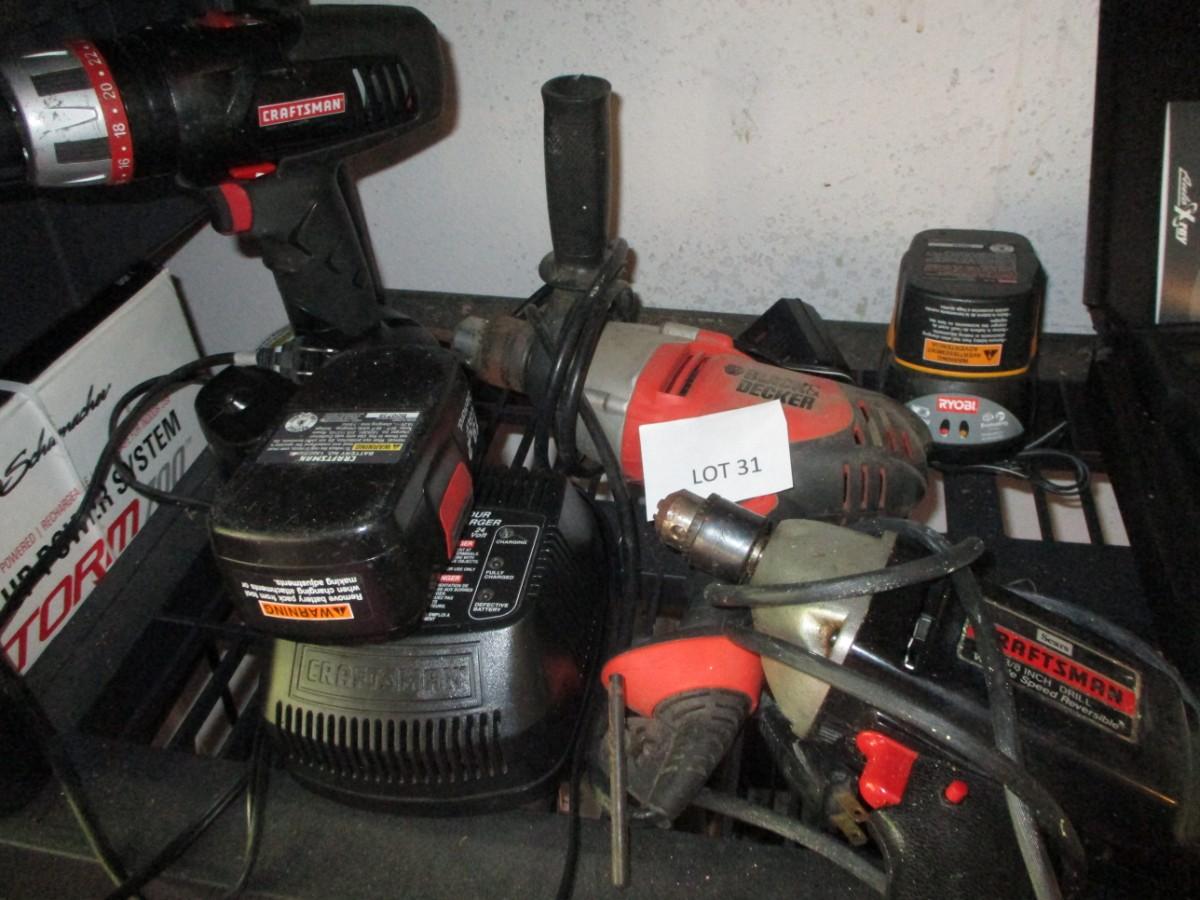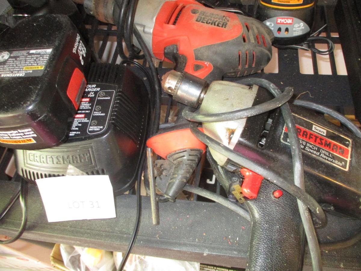 Ryobi Battery Charger, 2 craftsman drills and one black and decker. Working condition