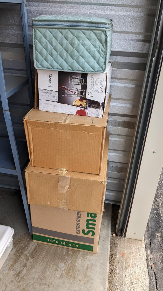5 containers of varied size drinkware. Tumblers, wine, and more! No shipping. 2604
