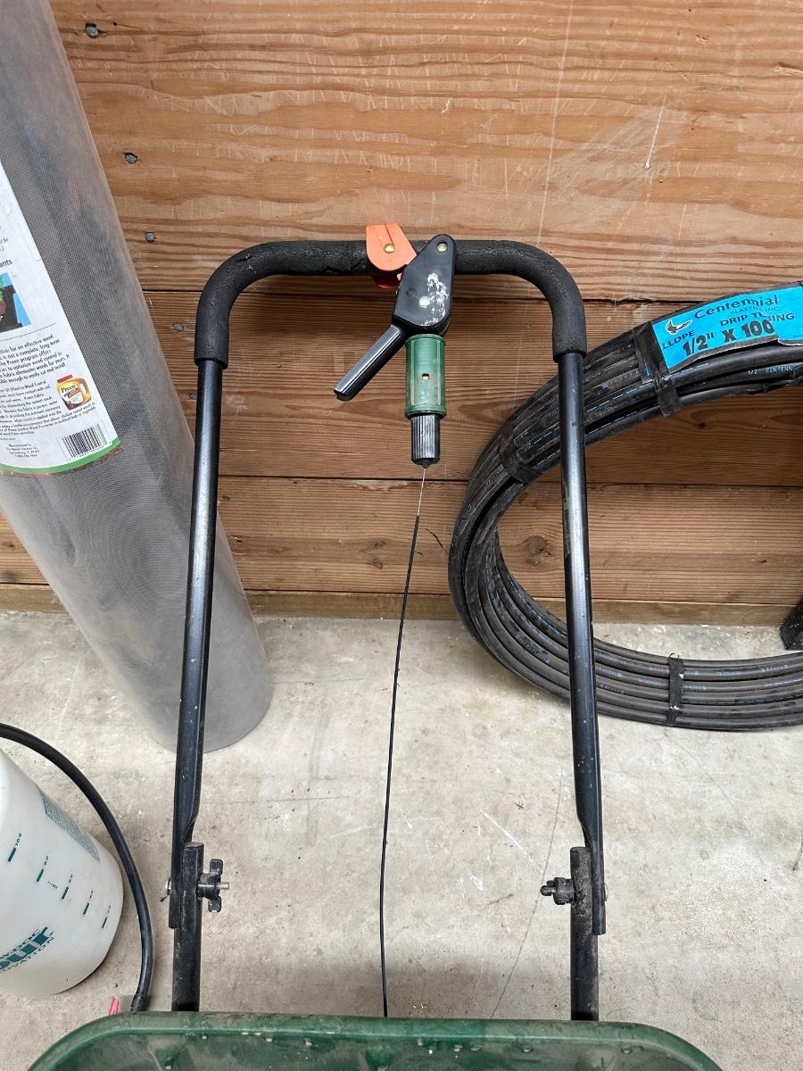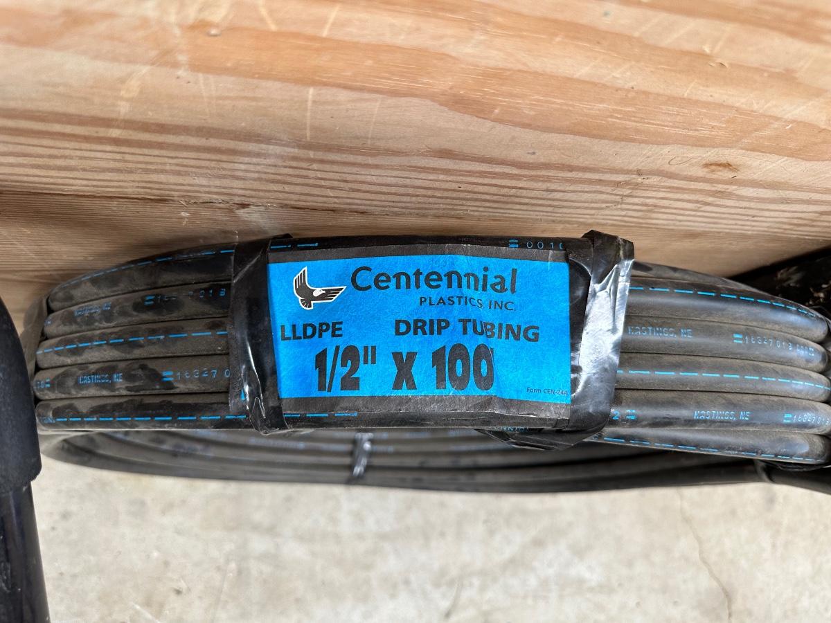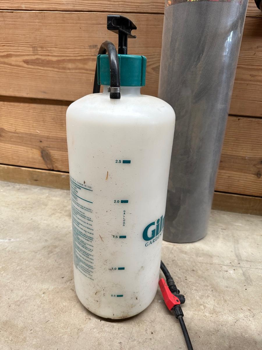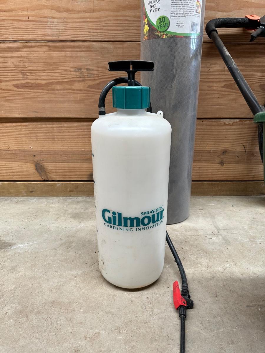 DRIP TUBING, SCOTTS SPREADER AND A WEED SPRAYER