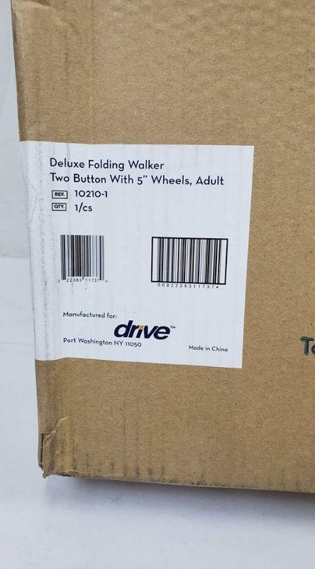 Drive Deluxe Two Button Folding Walker with 5" Wheels - New