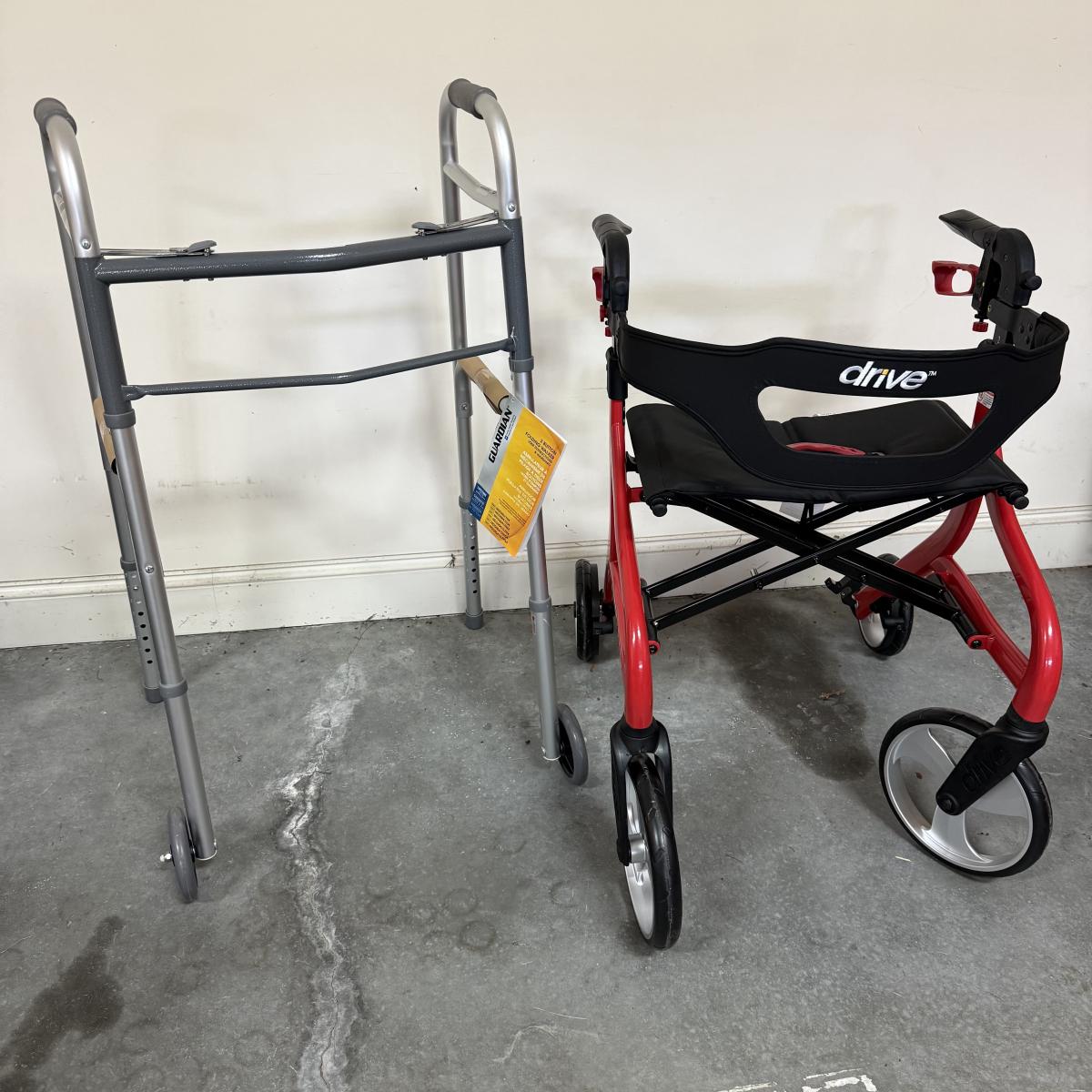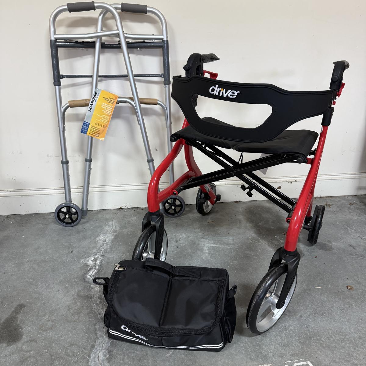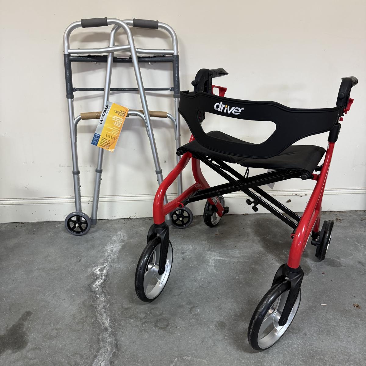 Brand new Guardian walker and a Drive Nitro Sprint rollator that appears to be unused or very gently used. The rollator comes with a bag of accessories. Please see photos for details.