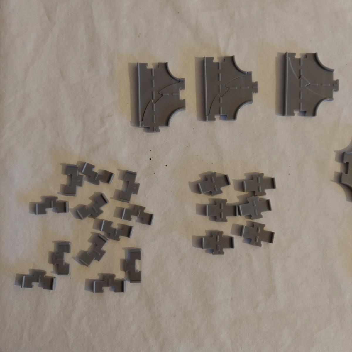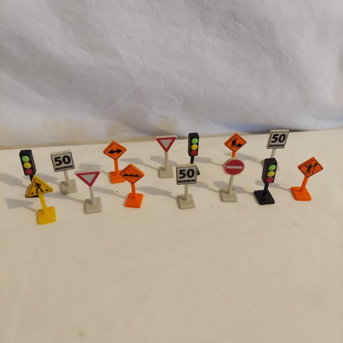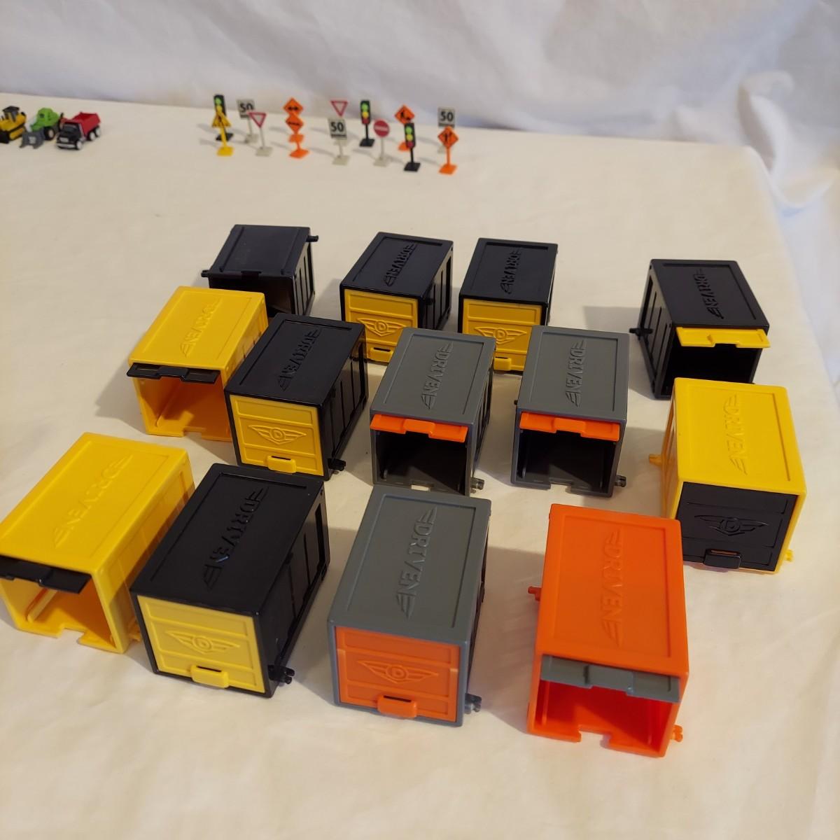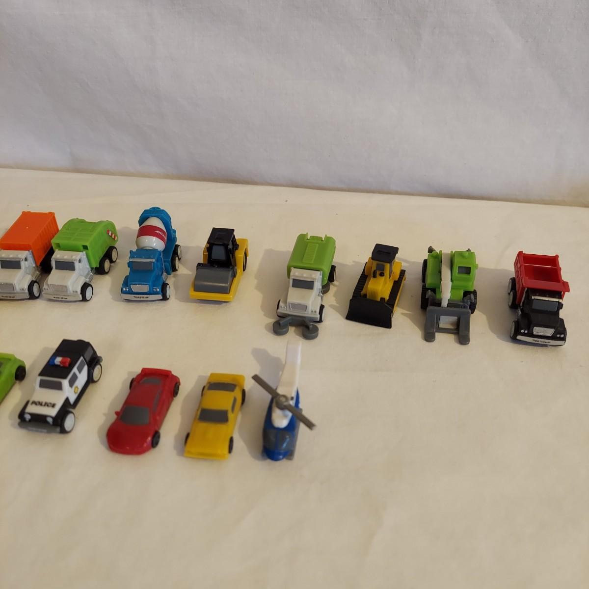 Driven Mini Cars and Roadway Tack. Lot includes 22 plastic mini cars, 14 road signs, 13 garages and 75+ assorted road track pieces. Please see photos for details. Shipping available.