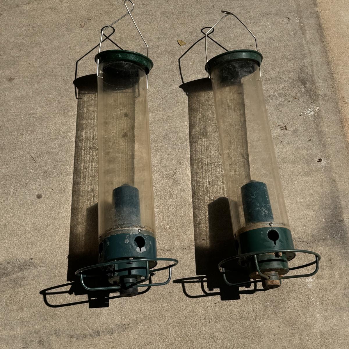This lot includes two Droll Yankees The New Generation Bird Feeders. They are both squirrel proof and each have four feeding ports. They do not come with charges, so they have not been tested. They both measure 8” x 22”H. Shipping available.