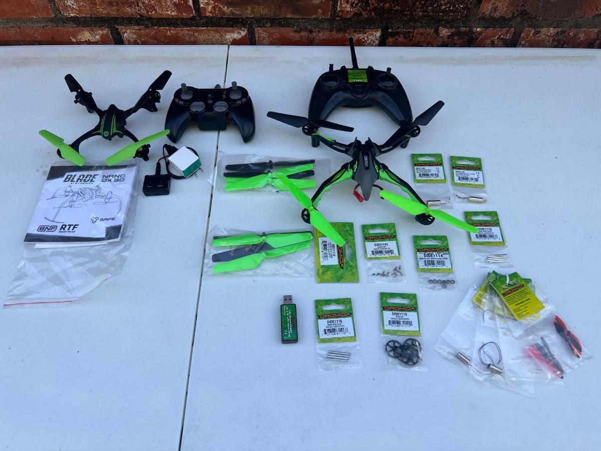 Auction for everything pictured. 2 drones and controllers as well as all spare parts. Drones have not been tested and are being sold AS-IS.