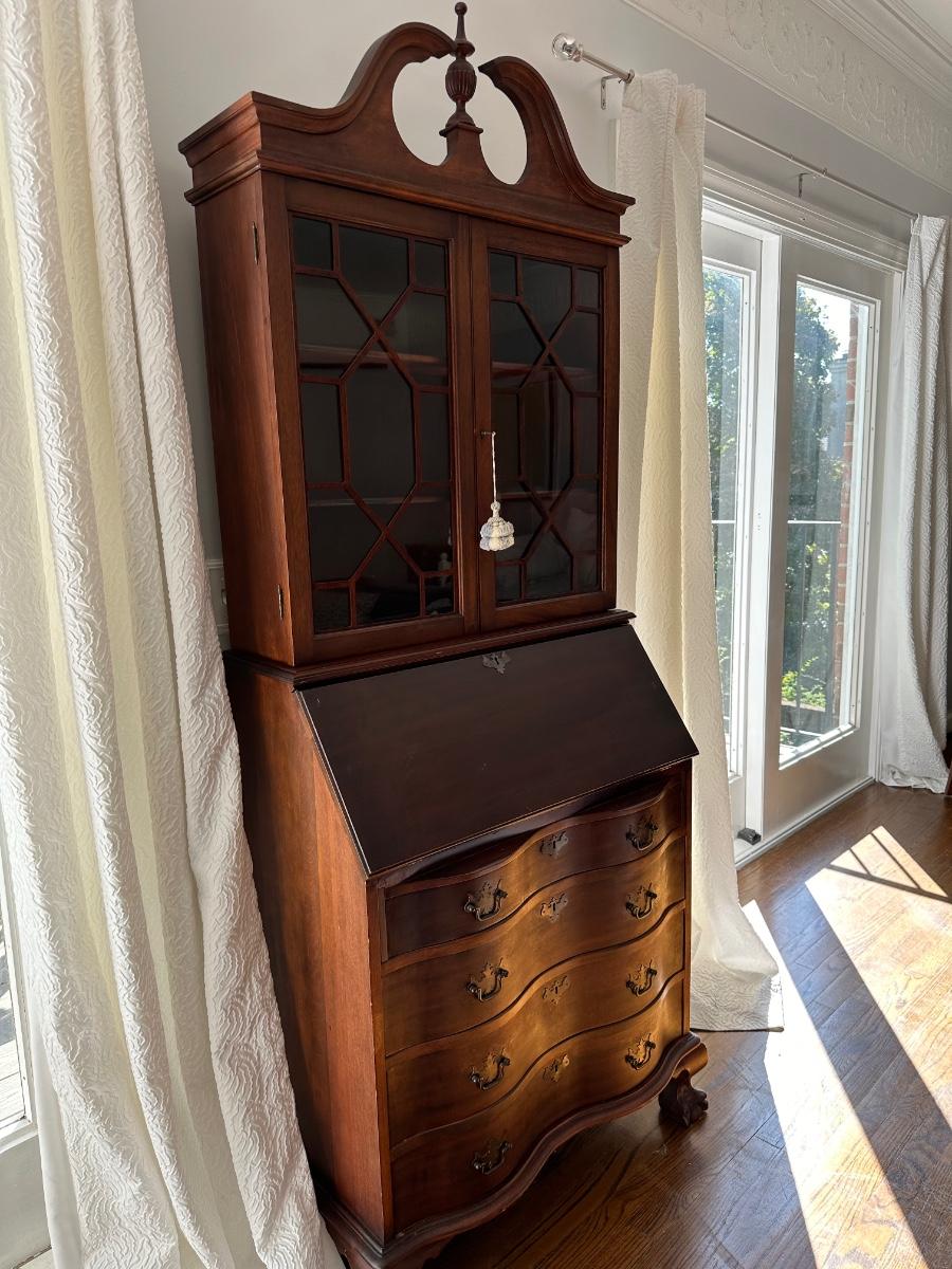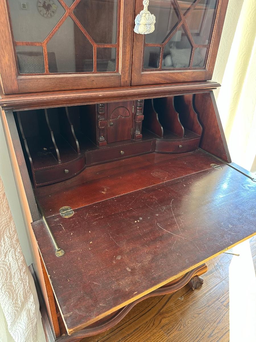 DROP FRONT SECRETARY 30"W X 18"DEEP X 80" TALL SEE PHOTOS FOR CONDITION