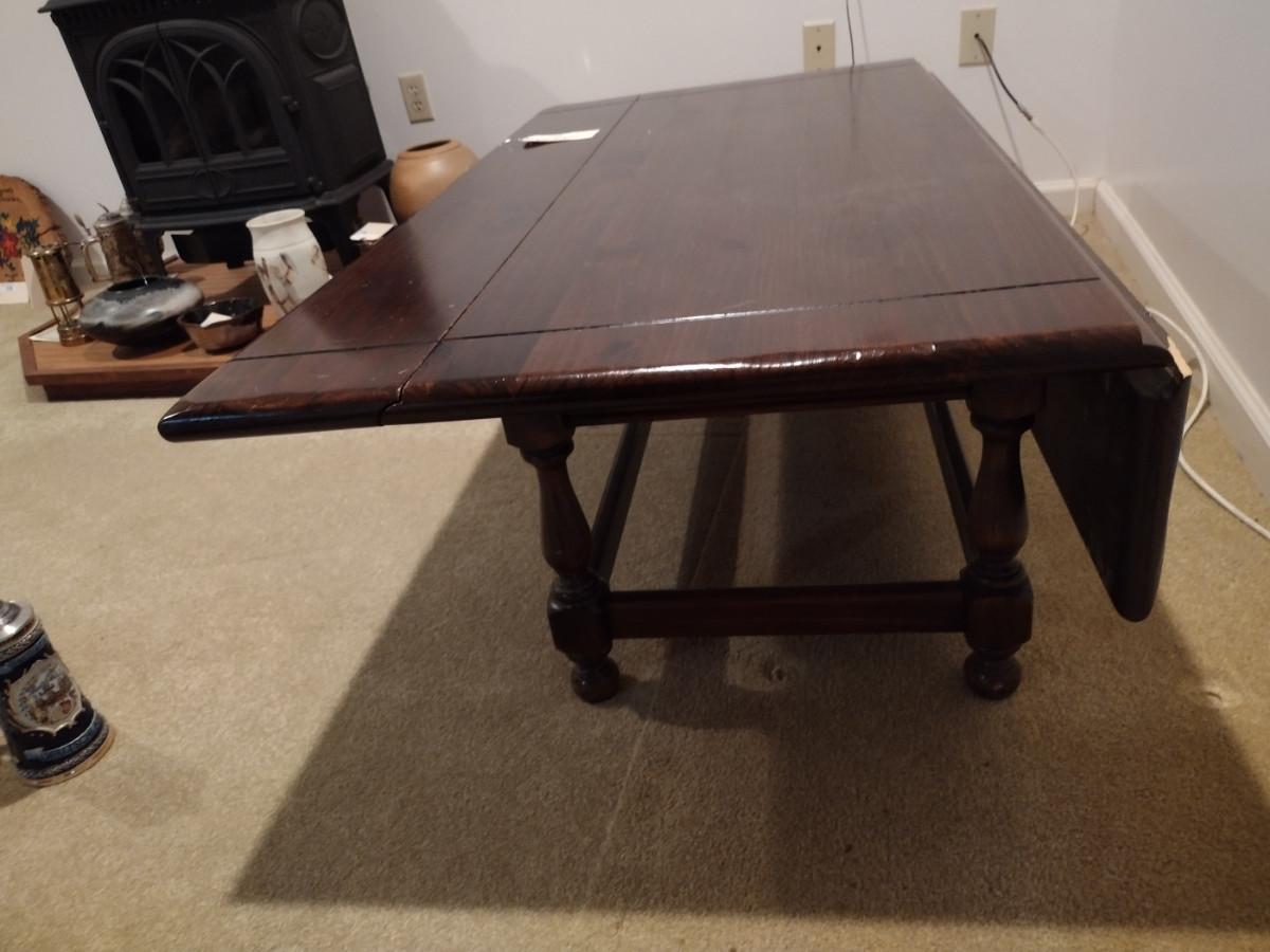 Main table measures 54"x22"x16" with two 8" leaves.