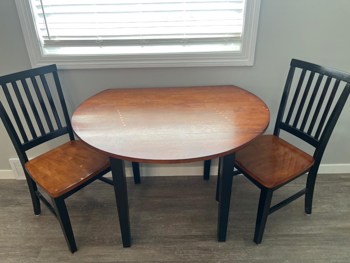 26” x42 when Drop leaves down, 42 x 42 when both sides are up