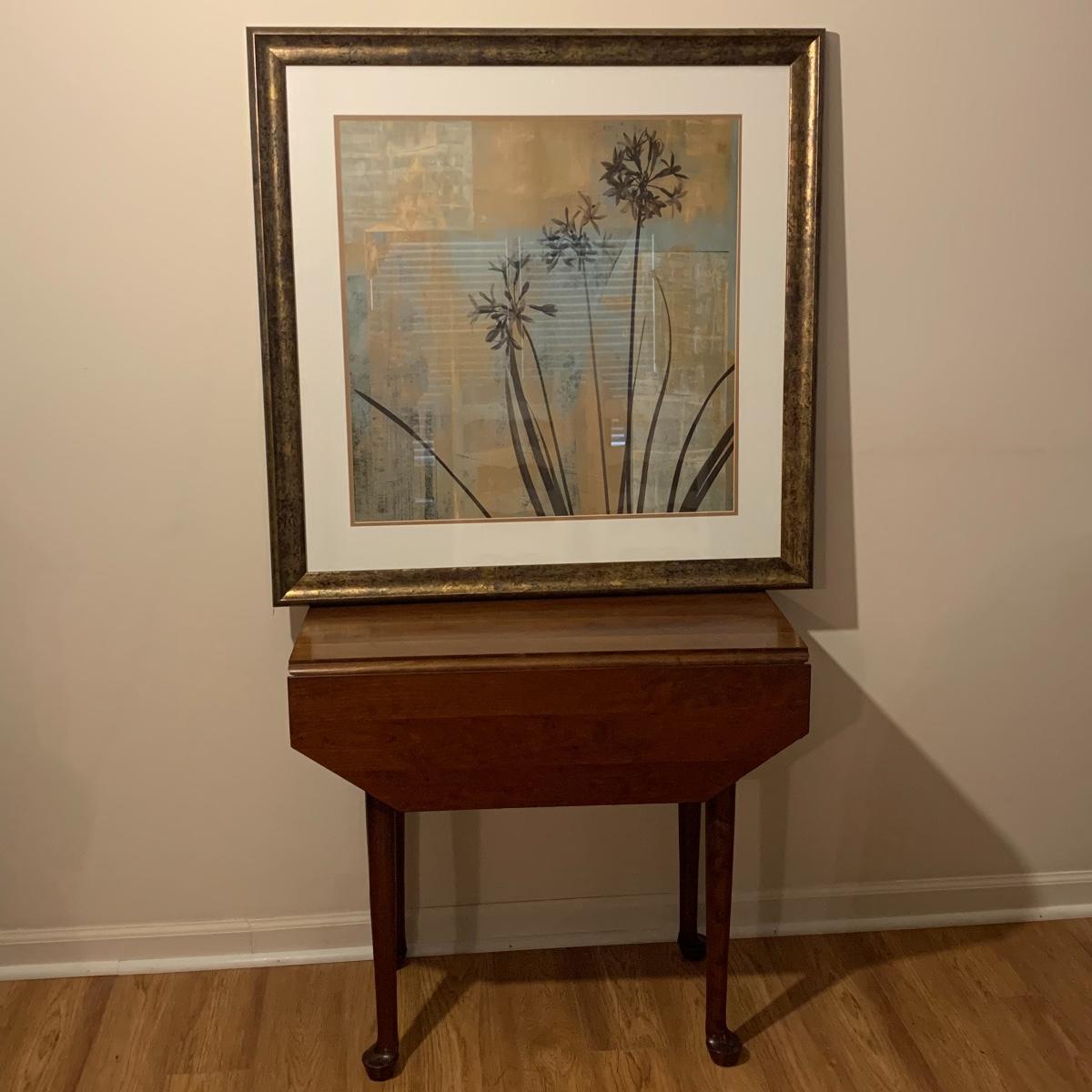 Drop Leaf Side Table w/ Large Framed Floral Print (LR-HS)