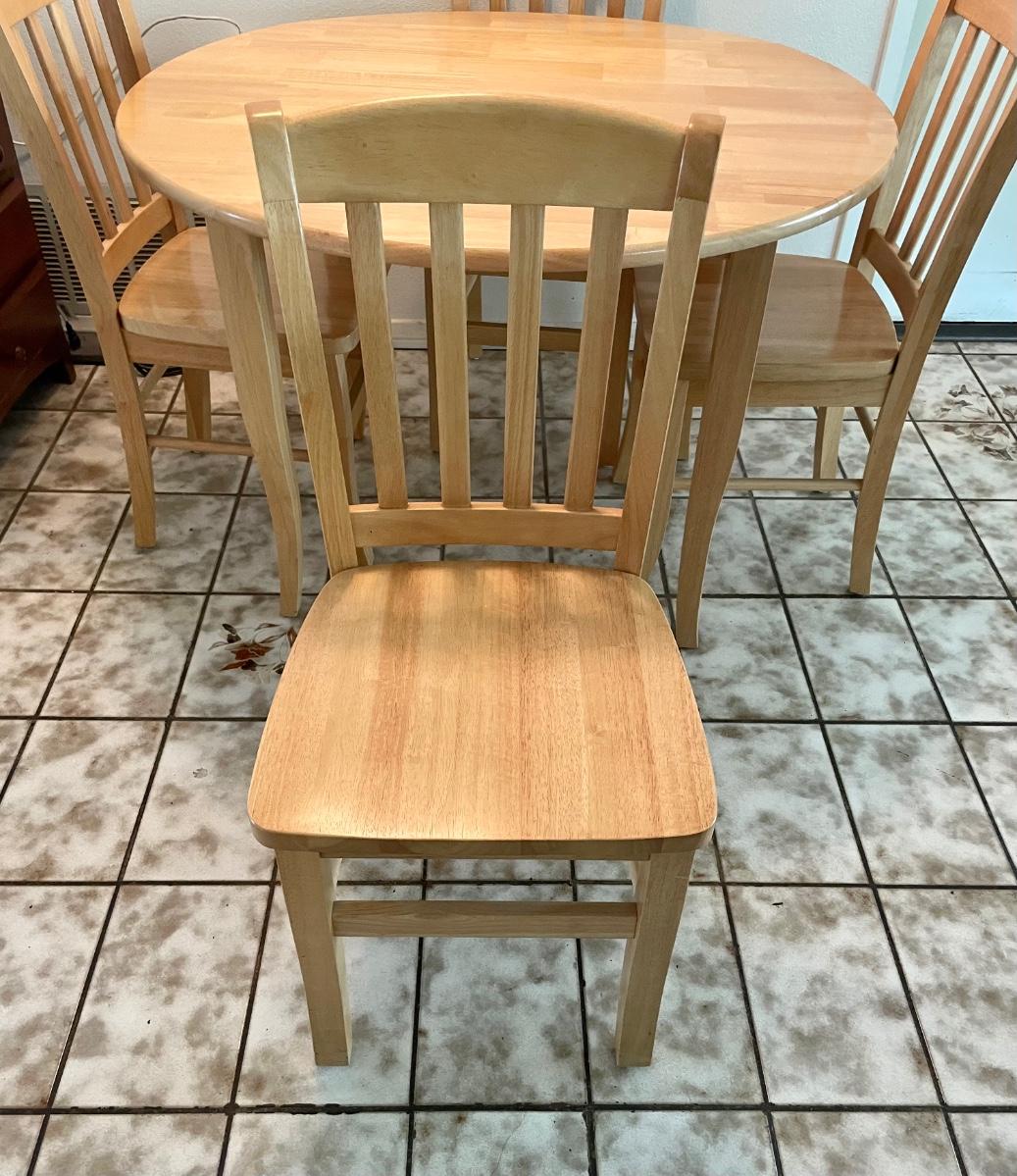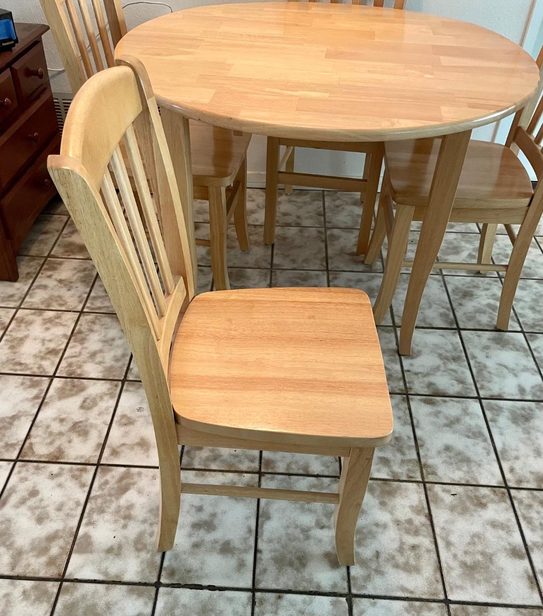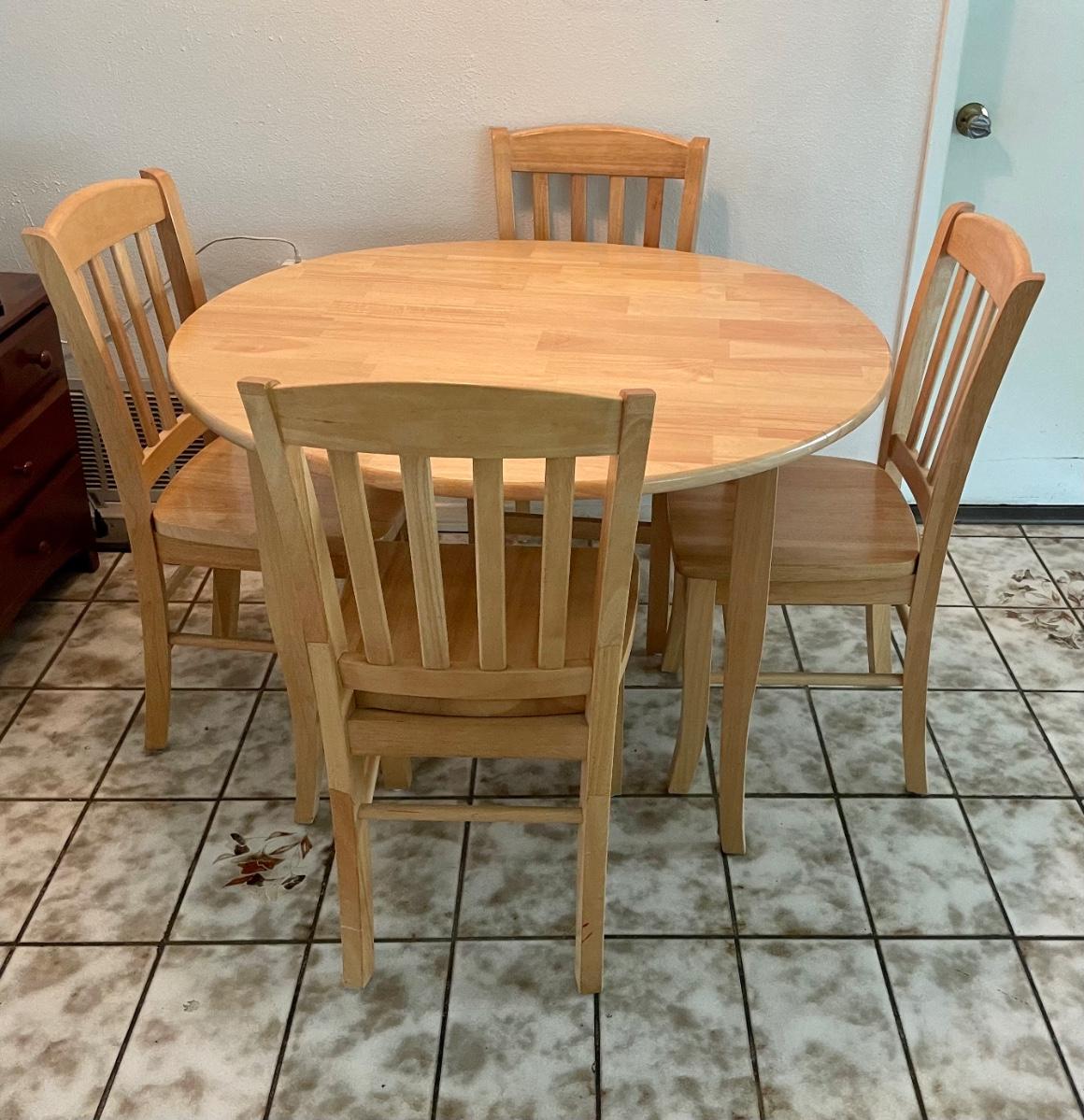 Light finished Wood Table and Chairs Set Drop leaf style, 39” high, 42” round