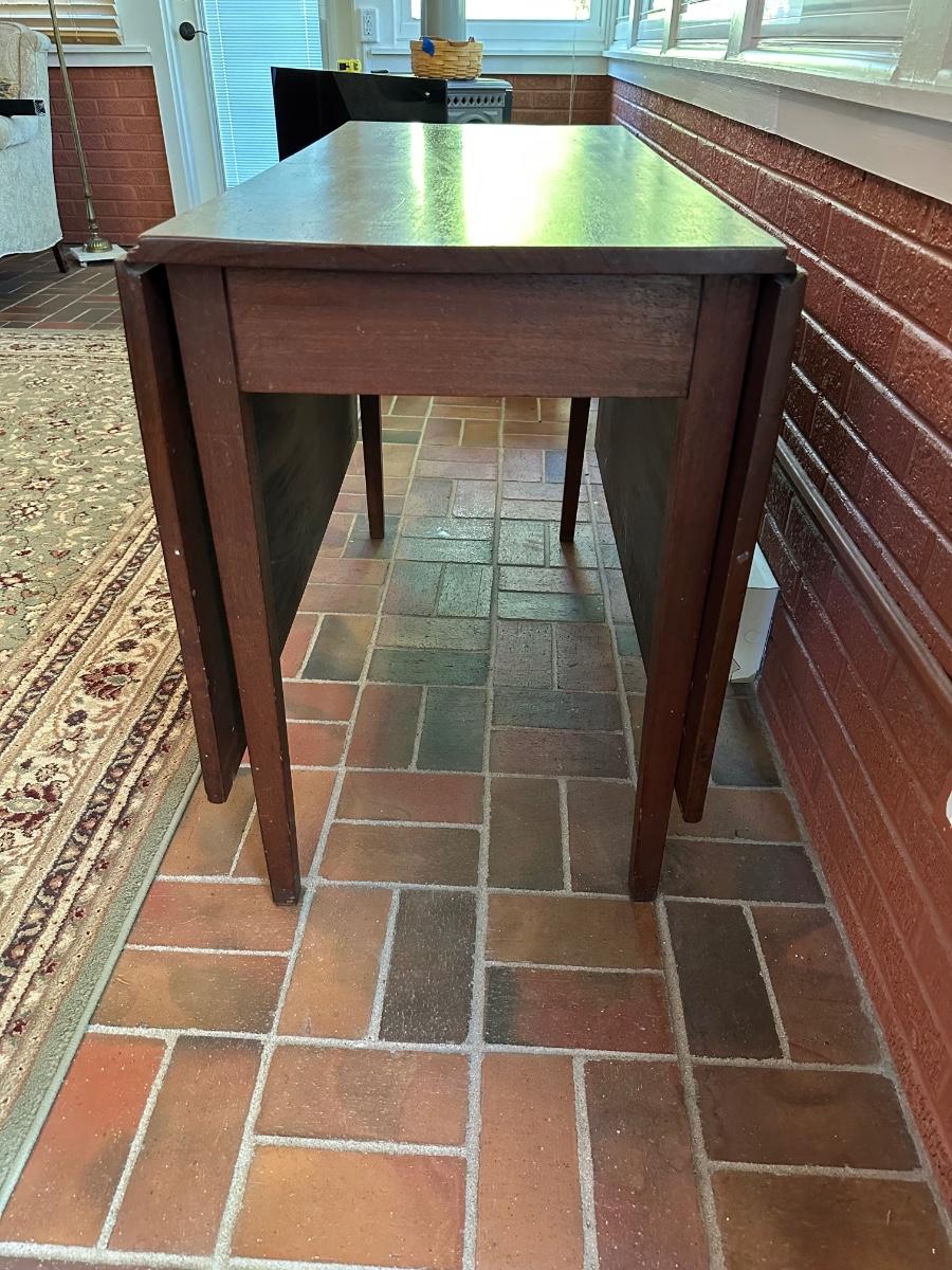 The drop leaves do not go up as the table is missing the piece to hold the leaves up.