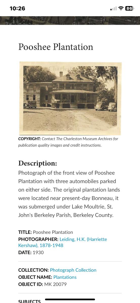 c1800 attributed to furnishings from Pooshee Plantation(Berkeley Co SC 1878-1948),